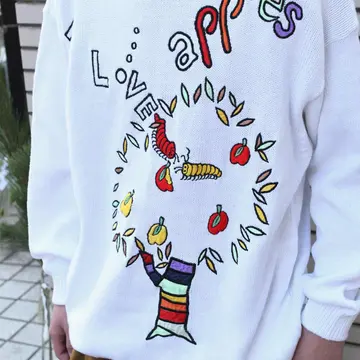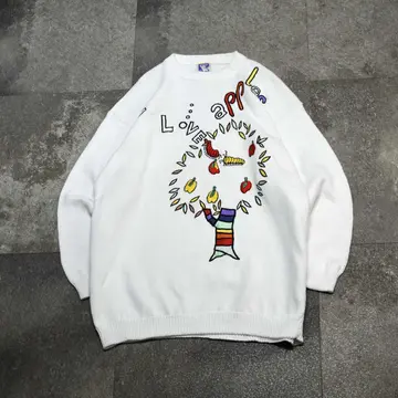 SIZE:XL 着丈76cm 肩幅60cm 身幅62cm 袖丈55cm fabric/cotton 着用画像 173cm/58kg このニットを見た時"はらぺこあおむし"が 真っ先に浮かび、離れなくなってしまったので。 色鮮やかな刺繍、心躍るデザイン、 純粋に"可愛い"の気持ちだけで良いと思います。 ※撮影状況により、実物と多少色が異なる場合が ございます。 ※古着を取り扱っているため、気づかない汚れや ほつれ等がある場合がございます。 ※サイズは着用感で選んでおり、 表記サイズではございません。 表記サイズは説明欄の最初に記載しております。 古着 オーバーサイズ old vintage ヴィンテージ used 80's 90's アメリカ古着 ユーロ古着 POLO RALPH LAUREN Eddie Bauer OLD GAP LANDS' END ランズエンド LLBean エルエルビーン オールドギャップ エディーバウアー ラルフローレン ブルックスブラザーズ Brooks Brothers などがお好きな方 #vintage #オーバーサイズ #old #used #90s #80s #古着 #ヴィンテージ #アメリカ古着 #ユーロ古着 #LLBean #エルエルビーン #EddieBauer #エディーバウアー #oldgap #オールドギャップ #LANDSEND #ランズエンド #NAUTICA #ノーティカ #ラルフローレン #POLORALPHLAUREN #ブルックスブラザーズ #BrooksBrothers #ニット #セーター #デザインニット #コットンニット #刺繍