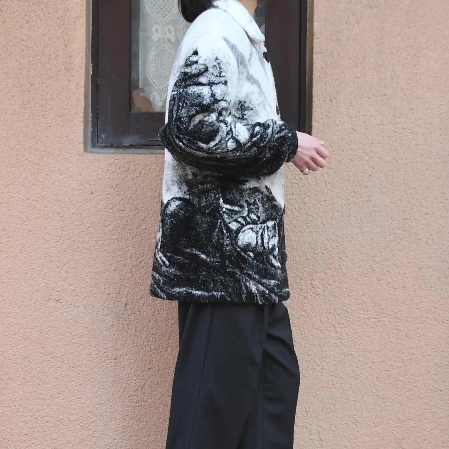 SIZE:- 着丈81cm 肩幅49cm 身幅61cm 袖丈63cm fabric/質感よりpoly 着用画像 173cm/58kg アニマルフリースの中でも変わり種、 ジップアップタイプではなく、ボタンタイプで 尚且つふたつのボタンを使用した、面白い個体です。 またインパクトが強くなりがちな この手のアイテムですが、景色を主とした柄で オオカミはちょこんと奥の方に。 そんな塩梅の良い主張なのが、この個体の良いところ。 ニットやシャツなんかの上から可愛くどうぞ。 ※撮影状況により、実物と多少色が異なる場合が ございます。 ※古着を取り扱っているため、気づかない汚れや ほつれ等がある場合がございます。 ※サイズは着用感で選んでおり、 表記サイズではございません。 表記サイズは説明欄の最初に記載しております。 古着 オーバーサイズ old vintage ヴィンテージ used 80's 90's アメリカ古着 ユーロ古着 POLO RALPH LAUREN Eddie Bauer OLD GAP LANDS' END ランズエンド LLBean エルエルビーン オールドギャップ エディーバウアー ラルフローレン ブルックスブラザーズ Brooks Brothers ブラック 黒 ホワイト 白 フリース 総柄 柄 などがお好きな方 #vintage #オーバーサイズ #old #used #90s #80s #古着 #ヴィンテージ #アメリカ古着 #ユーロ古着 #LLBean #エルエルビーン #EddieBauer #エディーバウアー #oldgap #オールドギャップ #LANDSEND #ランズエンド #NAUTICA #ノーティカ #ラルフローレン #POLORALPHLAUREN #ブルックスブラザーズ #BrooksBrothers #アニマルフリース #フリースジャケット #フリース #ジャケット #総柄 #柄