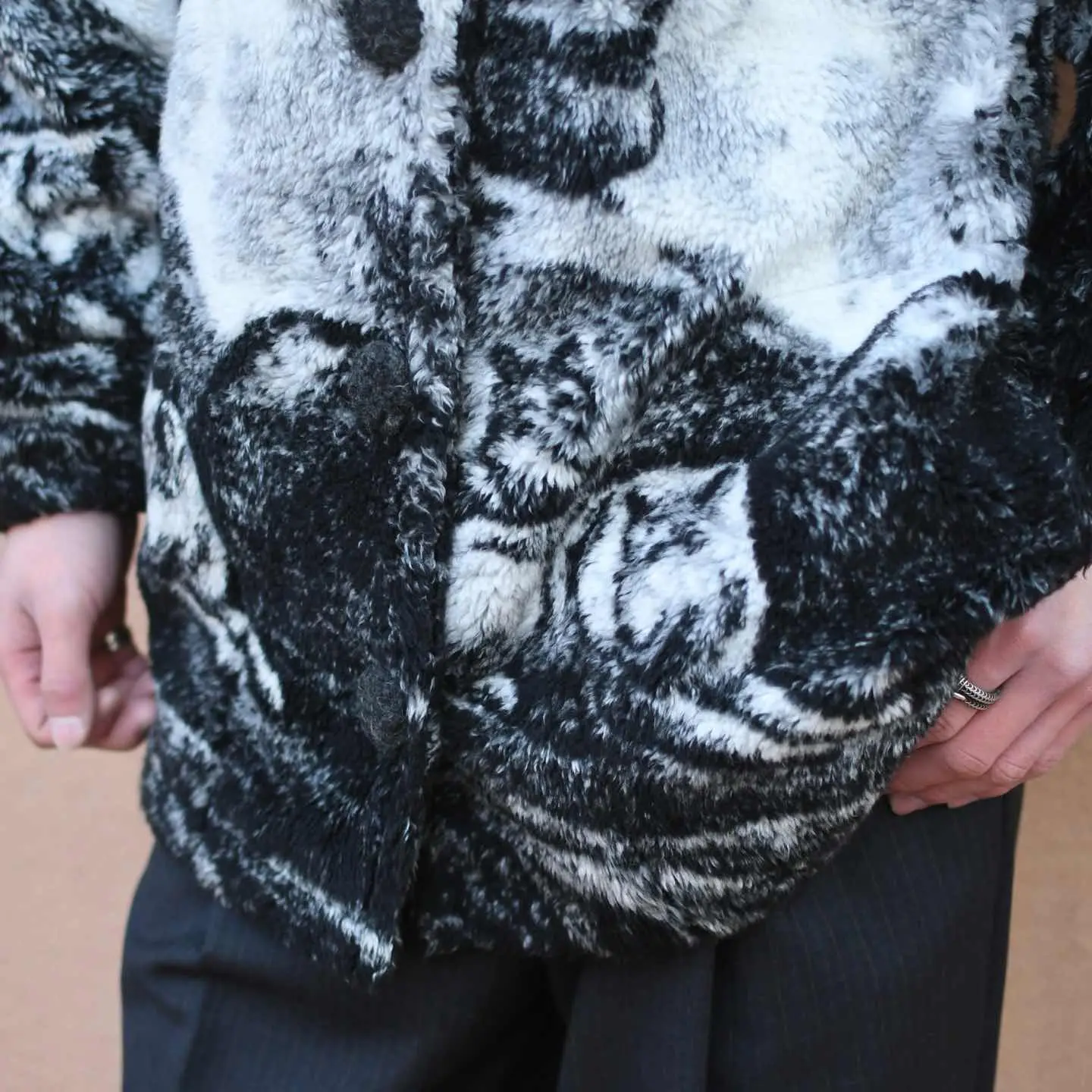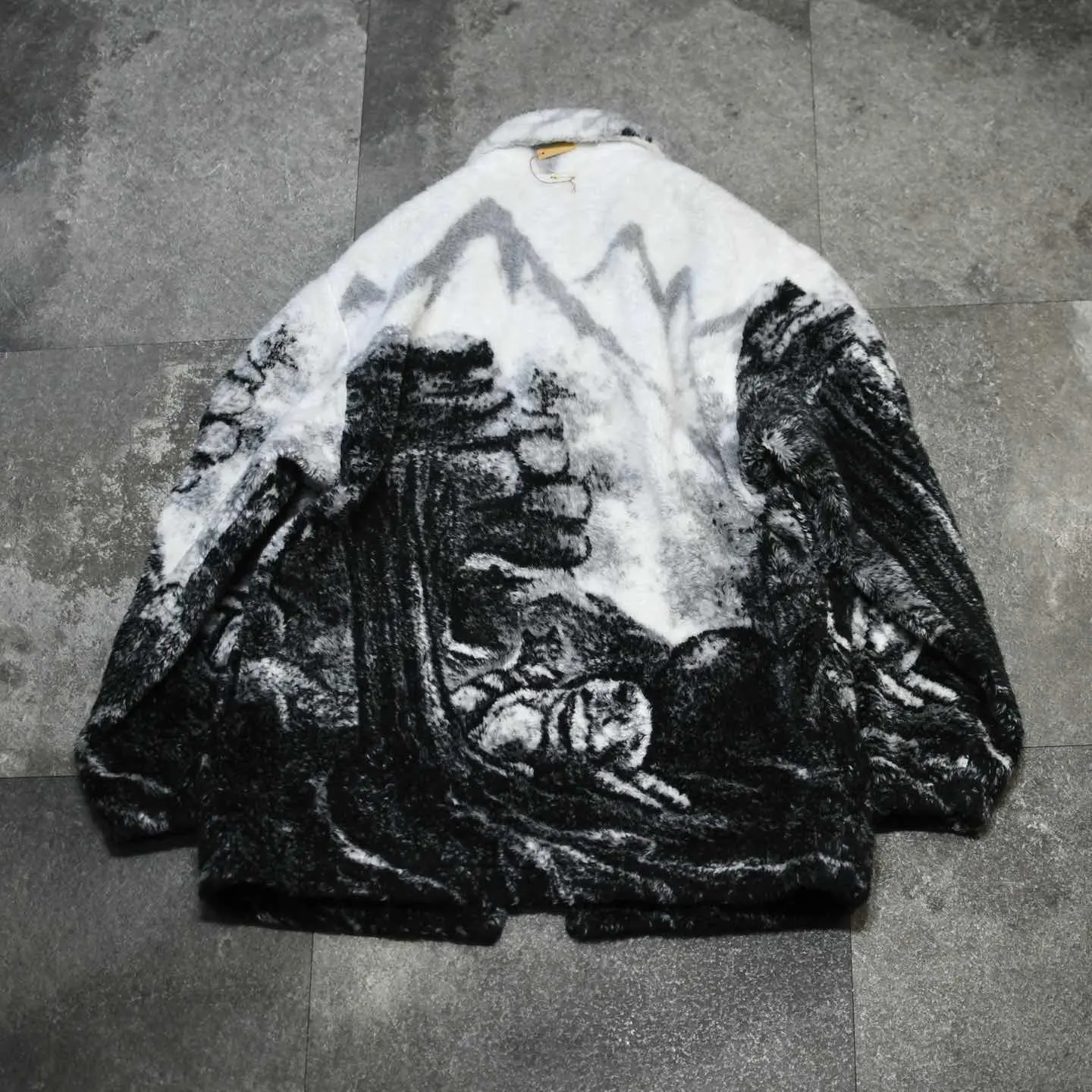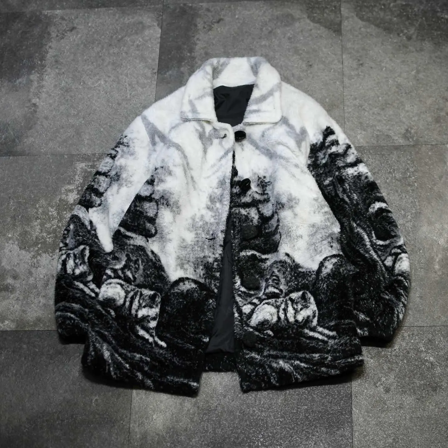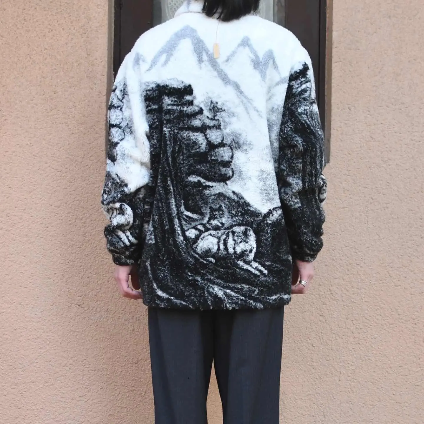 古着 アニマル フリースジャケット ジャケット オオカミ モノトーン