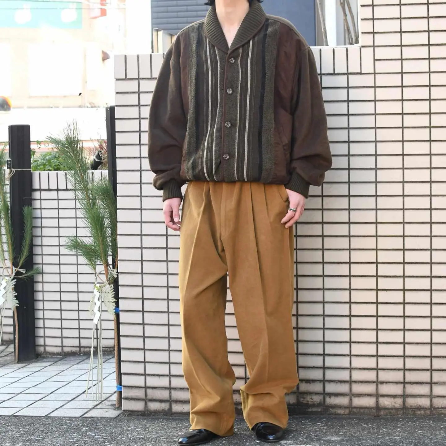 古着 ベロア スラックス タックパンツ ワイドパンツ マスタード ベロアパンツ