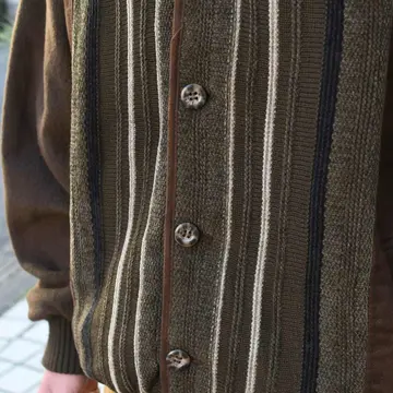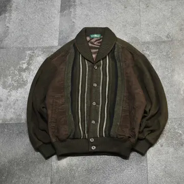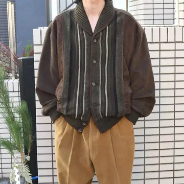 SIZE:L 着丈69cm 肩幅59cm 身幅71cm 袖丈61cm fabric/質感よりpoly・cotton 着用画像 173cm/58kg 一目見た時からクオリティの高さが伝わった逸品。 ニットとフェイクスウェードの切替は 見掛けることが多いものの、こちらはニット、 フェイクスウェードに加えフリースまで、 3つの生地を贅沢に切り替えたアイテムです。 主張し過ぎない小振りなショールカラーや、 上手く纏まった色使い、収まりの良い丸みのある シルエット。 下のボタンをいくつか開けてシルエットを変えて 着るのもおすすめです。 ※撮影状況により、実物と多少色が異なる場合が ございます。 ※古着を取り扱っているため、気づかない汚れや ほつれ等がある場合がございます。 ※サイズは着用感で選んでおり、 表記サイズは説明欄の最初に記載しております。 オーバーサイズ old vintage ヴィンテージ used 80's 90's アメリカ古着 ユーロ古着 POLO RALPH LAUREN Eddie Bauer OLD GAP LANDS' END ランズエンド LLBean エルエルビーン オールドギャップ エディーバウアー ラルフローレン ブルックスブラザーズ Brooks Brothers ブルゾン モールニット ショールカラー カーキ ブラウン 茶色 ジャケット などがお好きな方 #vintage #オーバーサイズ #old #used #90s #80s #古着 #ヴィンテージ #アメリカ古着 #ユーロ古着 #LLBean #エルエルビーン #EddieBauer #エディーバウアー #oldgap #オールドギャップ #LANDSEND #ランズエンド #NAUTICA #ノーティカ #ラルフローレン #POLORALPHLAUREN #ブルックスブラザーズ #BrooksBrothers #ブルゾン #ジャケット #ショールカラー