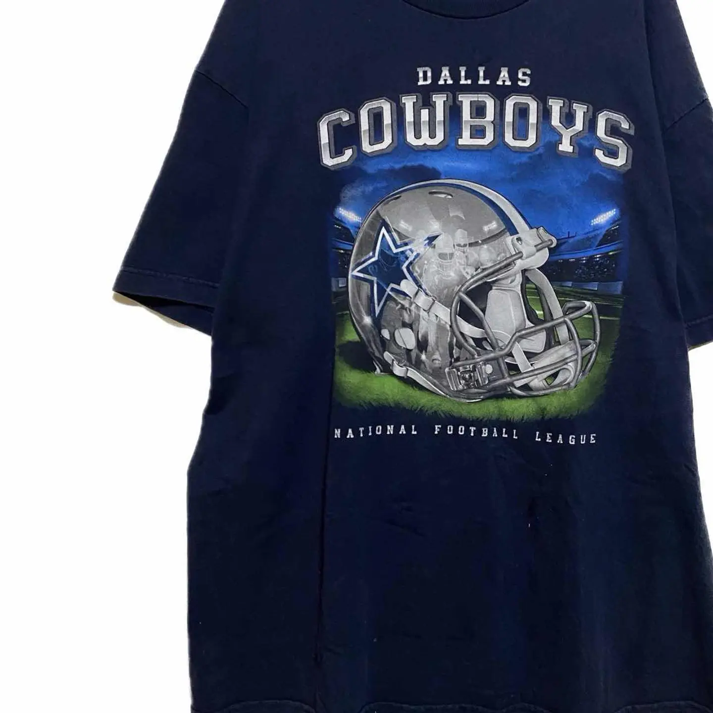 90-00s NEL cowboys オフィシャル メキシコ製 ミラージュヘッド T XL 題名だけで説明不要のレベルのNFLオフィシャルのカウボーイズの限定Tシャツミラージュヘッドです。 この時代のヴィンテージのオフィシャルはメキシコの工場が管轄していて、 さらにヘッドマスクがあるじゃないですか。これの中にメンバーの全てが一緒に戦うと言う意味を持して、鏡のようにメンバー全員を映し出した激レア商品となっております。 申し訳ないですが、あまり価値のないものは、ミラーヘッドじゃないそのままの勢プリントとかになってますね。これは丁寧にプリントを解くされてますので、確実にあなたのお宝になる事は間違いないです。 Tシャツは年中活躍するからこそ一切手抜きはしないほうがいいと、私は勝手にですが思っております。さらにこの価格だったら別に何もしてもないと思いますね。 コーディネート岡山別注の3Dボトムにインナー重ね着して季節に対応したコーディネートとなっておりますので、参考になりましたらゲットください。 ▷color◁ ダークネイビー ※ブラウザで異なる場合ありますがかなり実物には、近づけてます、 ▷size◁ 平置き片面採寸【㎝表記】 表記size L 表記ですが、海外製 明らかXLは、ありますビックサイズ 着丈/80 身幅/62 肩幅/63DS 袖丈 /40↓ DSは袖はハンガー採寸 ※多少の誤差は理解下さい 170センチ Mジャストの私が、着用してかなり、ゆったり、 【素材】 USA material表記 ※コットン 【状態】 不具合なく最高!! 検品、洗濯、検品で、3回チェックして発送しますので、ご安心して、お買い求め下さい!!