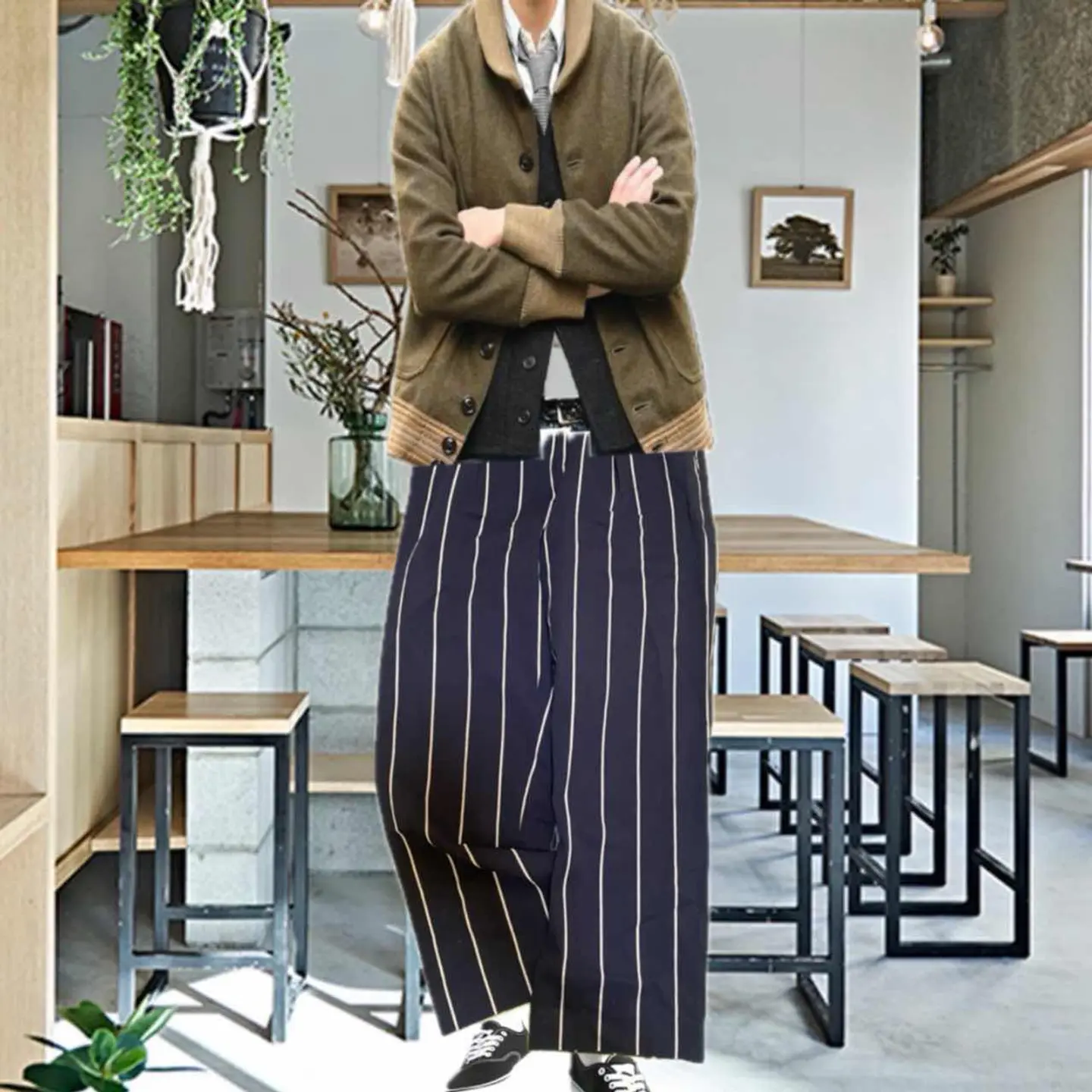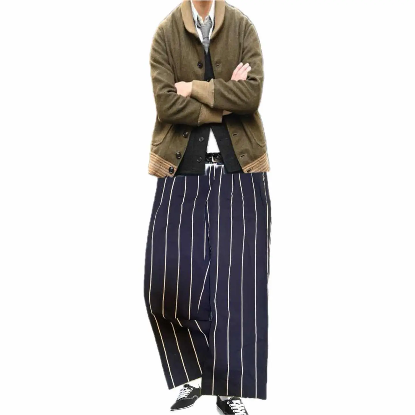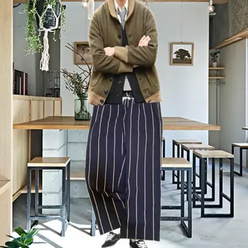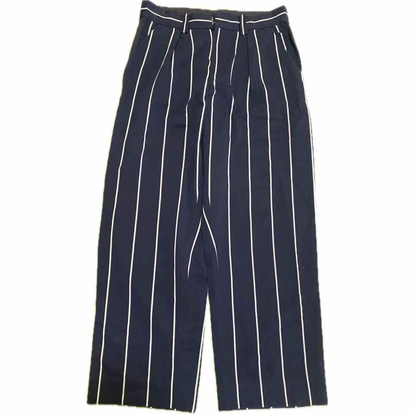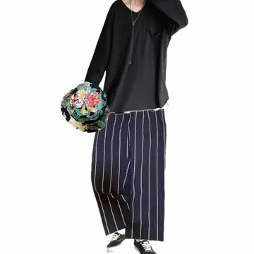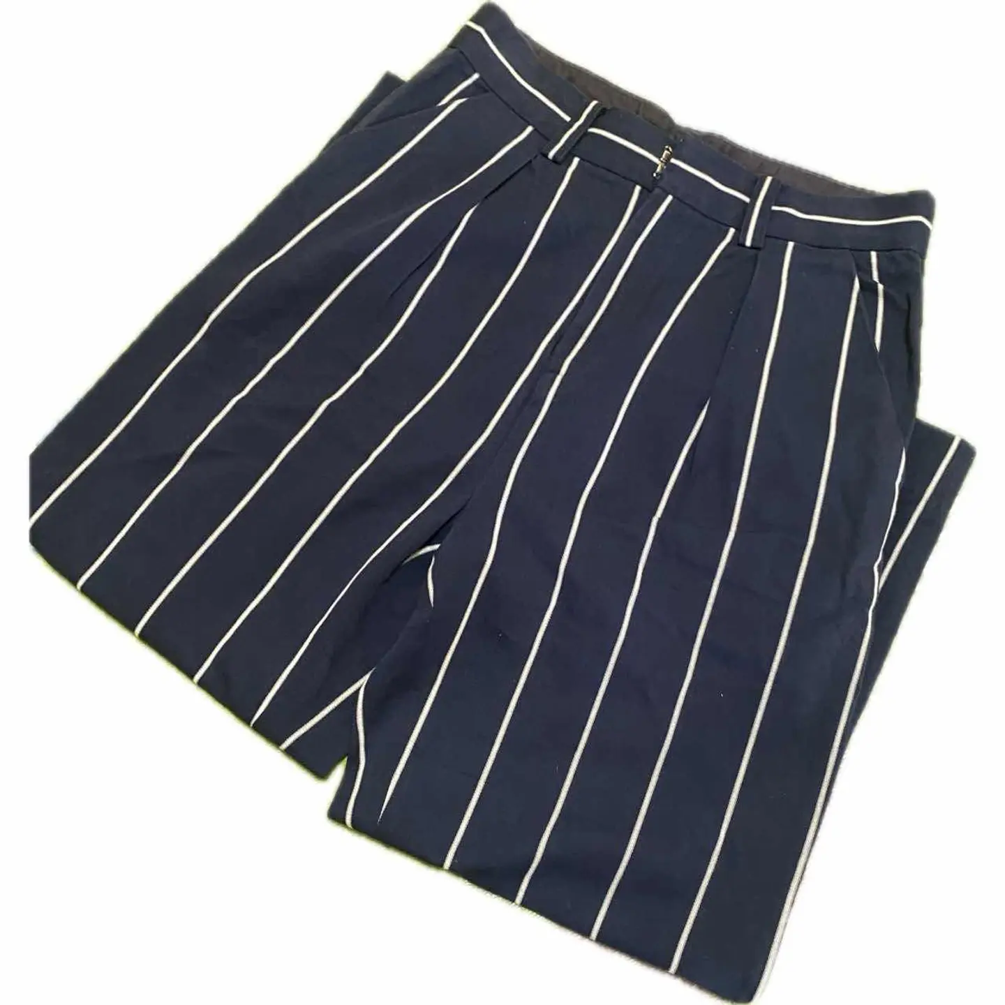 90s master フレイム トラッド限定モデル、ピトラッドボトム •brand vintage •data 90s 普遍的なトラディショナルを原点に、シンプルでモダンな要素をプラスし、洗練された大人のスタイルを、提供する master flagme limited TRAD ライン90s 45no 18カム、 no45は、みつけたら、即ゲットが鉄則 •point もはやさすがとしか言いようのないブランドのポリシーが見える限定ライン、ストライプパンツって様々なものがありますが、ピンストライプタイプのやつのネイビーはトラッドなんですよ。TRADの象徴ともいえます。 そこで今回はスニーカーはvansにして、カジュアル感を見せてますが、まず最初のコーディネート、完全に大人コーディネート1950トラッドスタイルです。 いやいや、いやいや、タフすぎるんだよって方いるかもしれませんよね。はい余裕です。超オーバーサイズのゆるだぼニットを1枚で決める季節変わったら、これでこなれた感じでカッコイイですよね。どちらでもいけるってことです。それはやりすぎてないストライプだしクールなトラッドボトムだからです、 サイズさえ合えば、確実にこれは即ゲットしたほうがいいですね ▷color◁ ネイビー ※使いのブラウザにより色が変わってみえる場合あります ▷size◁ 平置き片面採寸【㎝表記】 表記size 不明 Mくらい私が入るので 【※ウエストのみ、メジャーで一周採寸】 ウエスト73 ベルトループあるから、それ以下は対応 股上32 股下68 腿渡り30 裾幅30 ナチュラルstraight モデル170㎝/普通体型、30インチジャストな体型参考に、 ▷material◁ 斜織コットンよってシワに強い ▷condition◁ 不具合無し ※入念にチェックは、しておりますが、vintage/usedの特性ご理解下さい
