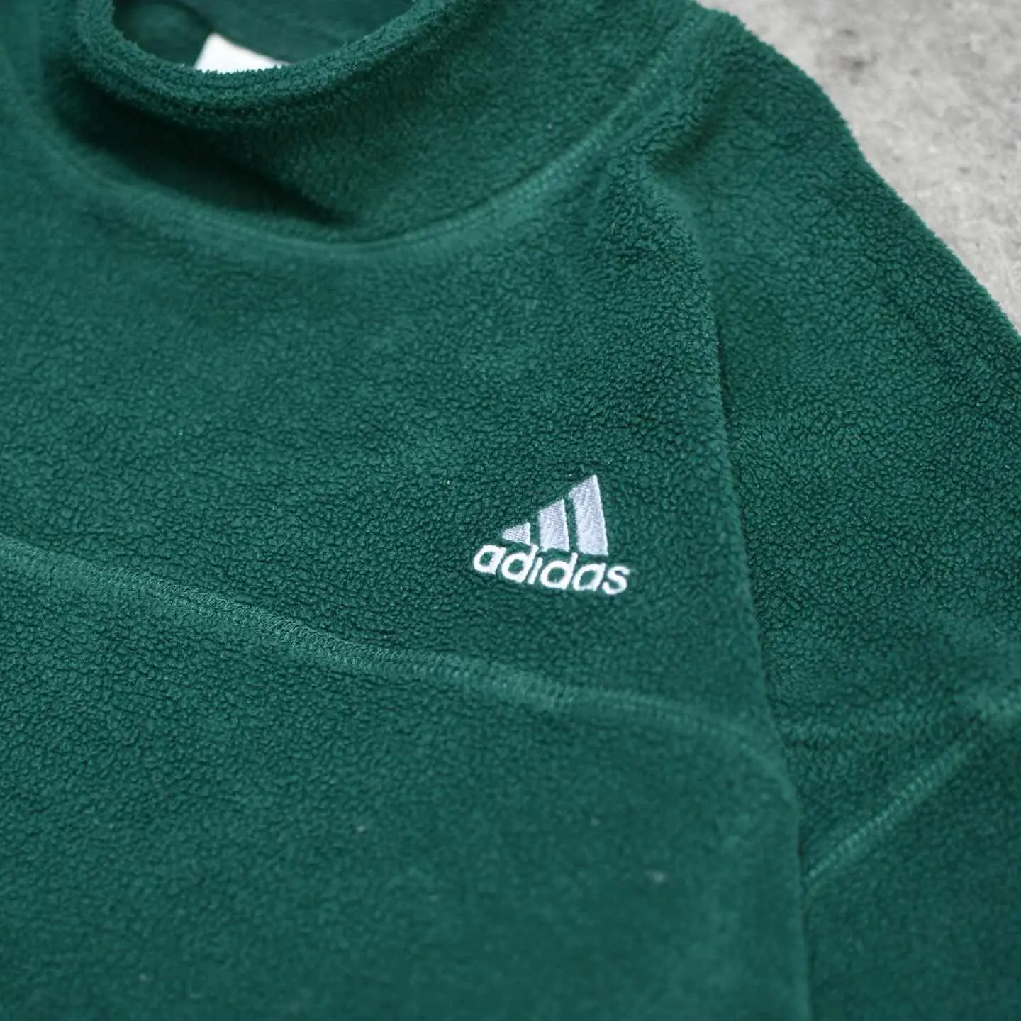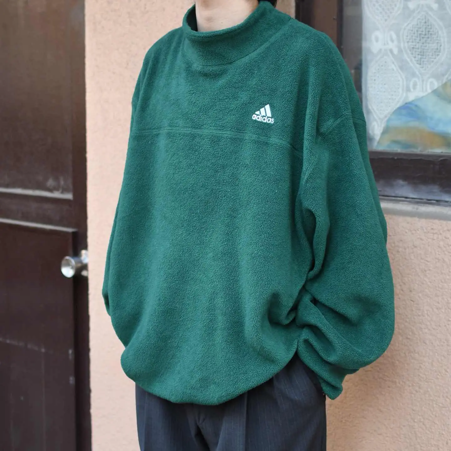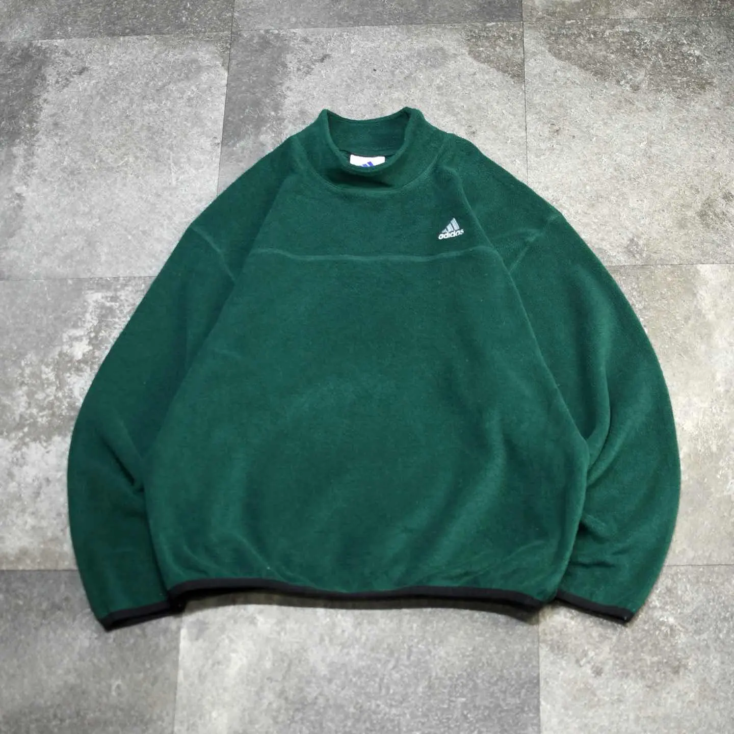 古着 adidas ワンポイント ロゴ モックネック フリース プルオーバー