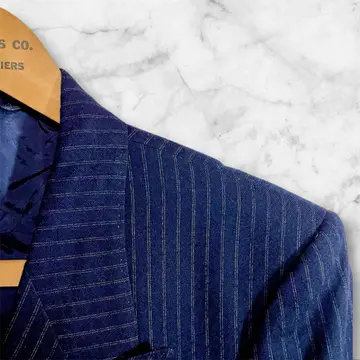 80年代のイヴサンローランのダブルジャケット。 イタリア製。 柄はネイビーのストライプです。 素材ははピュアバージンウール。 #yvessaintlaurent #80s #テーラードジャケット #ダブルブレスト #vintage