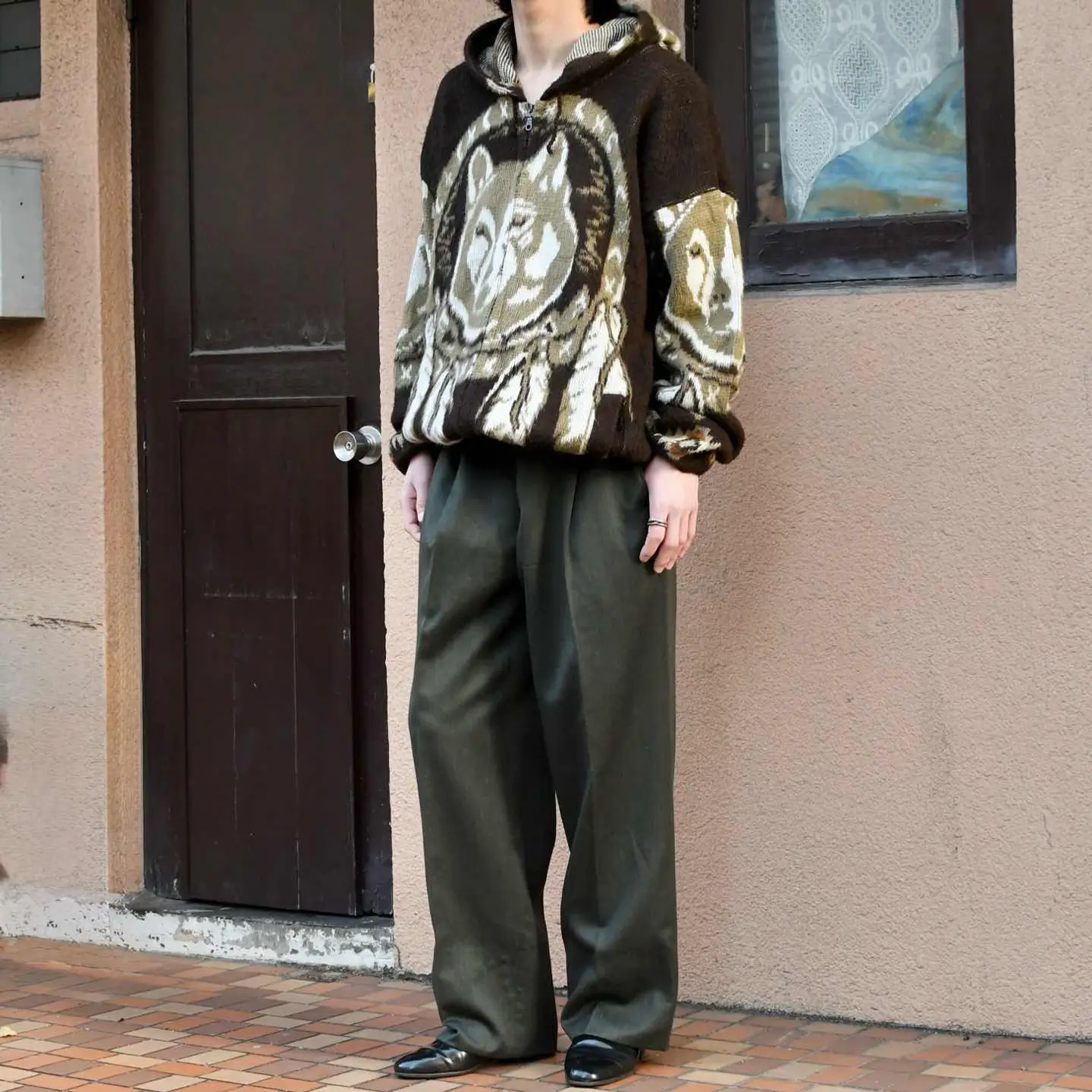 古着 ブルゾン ワイドパンツ set up セットアップ ブラウン 茶色