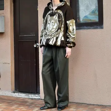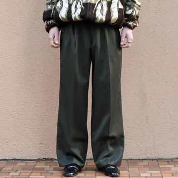 SIZE:38×36 ウエスト93cm 総丈102cm 股下74cm わたり38cm 裾幅26cm fabric/pure new wool made in italy 着用画像 173cm/58kg 裾まで太さを残した存在感のあるシルエットと、 深みのあるダークグリーン色が組み合わさった ウールスラックス。 そんな色味とウールの微細な発色から生まれる 上品な雰囲気は、数あるスラックスの中でも 異彩を放っていましたし、裏地が付くことで 刺激が少なく気軽に手が伸びる点も推せるポイント。 ”スラックス”という良し悪しが分かりにくい カテゴリーの中で、生地感やシルエットなど 視覚的にも静かに惹かれる逸品です。 ※裾上げ等のレングス直しにつきましては、 購入前に、必ずご連絡お願い致します。 ※撮影状況により、実物と多少色が異なる 場合がございます。 ※古着を取り扱っているため、気づかない汚れや ほつれがある場合がございます。 ※サイズは着用感で選んでおり、 表記サイズは説明欄の最初に記載しております。 old vintage ヴィンテージ used 80's 90's アメリカ古着 ユーロ古着 POLO RALPH LAUREN Eddie Bauer OLD GAP LANDS' END ランズエンド LLBean エルエルビーン オールドギャップ エディーバウアー ラルフローレン ブルックスブラザーズ Brooks Brothers 緑 カーキ スラックス ウールパンツ などがお好きな方 #vintage #old #used #90s #80s #古着 #ヴィンテージ #LLBean #oldgap #LANDSEND #ランズエンド #NAUTICA #ラルフローレン #POLORALPHLAUREN #ブルックスブラザーズ #BrooksBrothers #スラックス #ウールパンツ #ワイドパンツ #タックパンツ #ウールスラックス