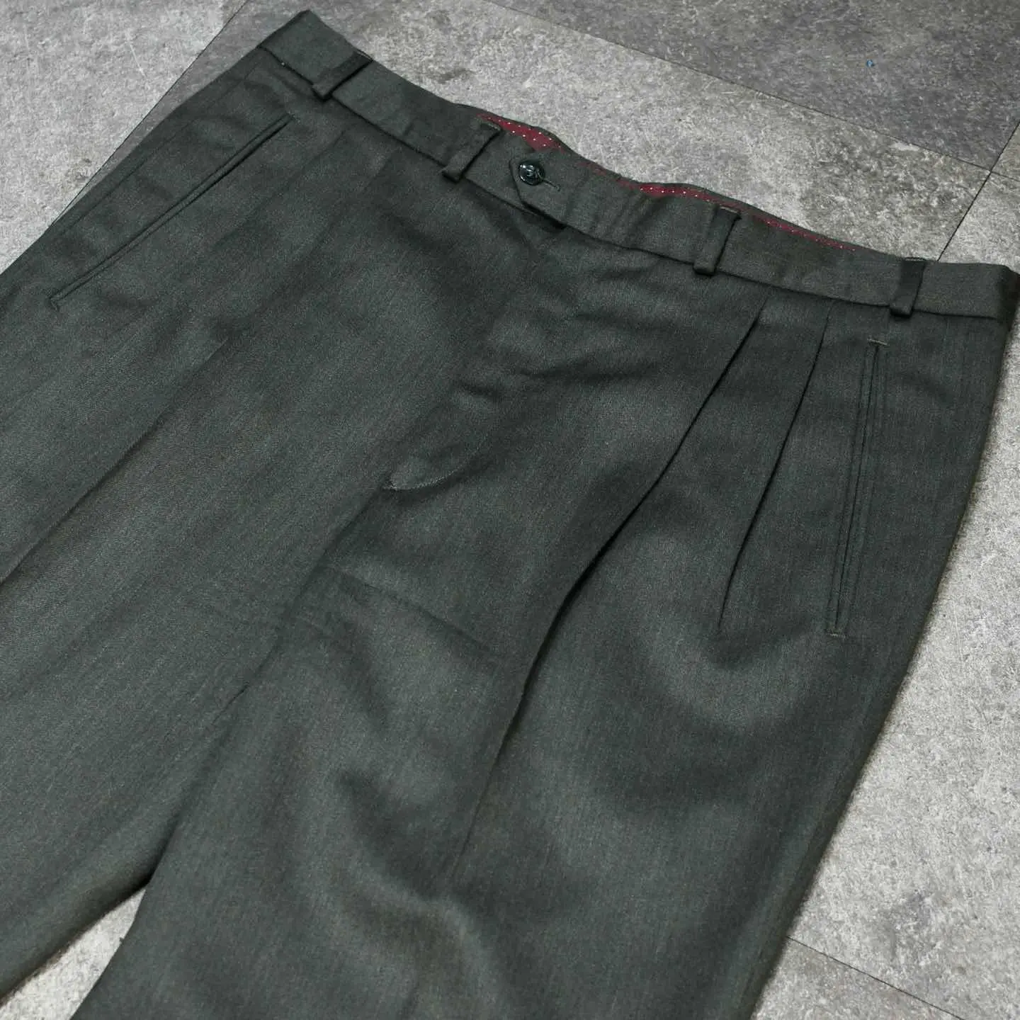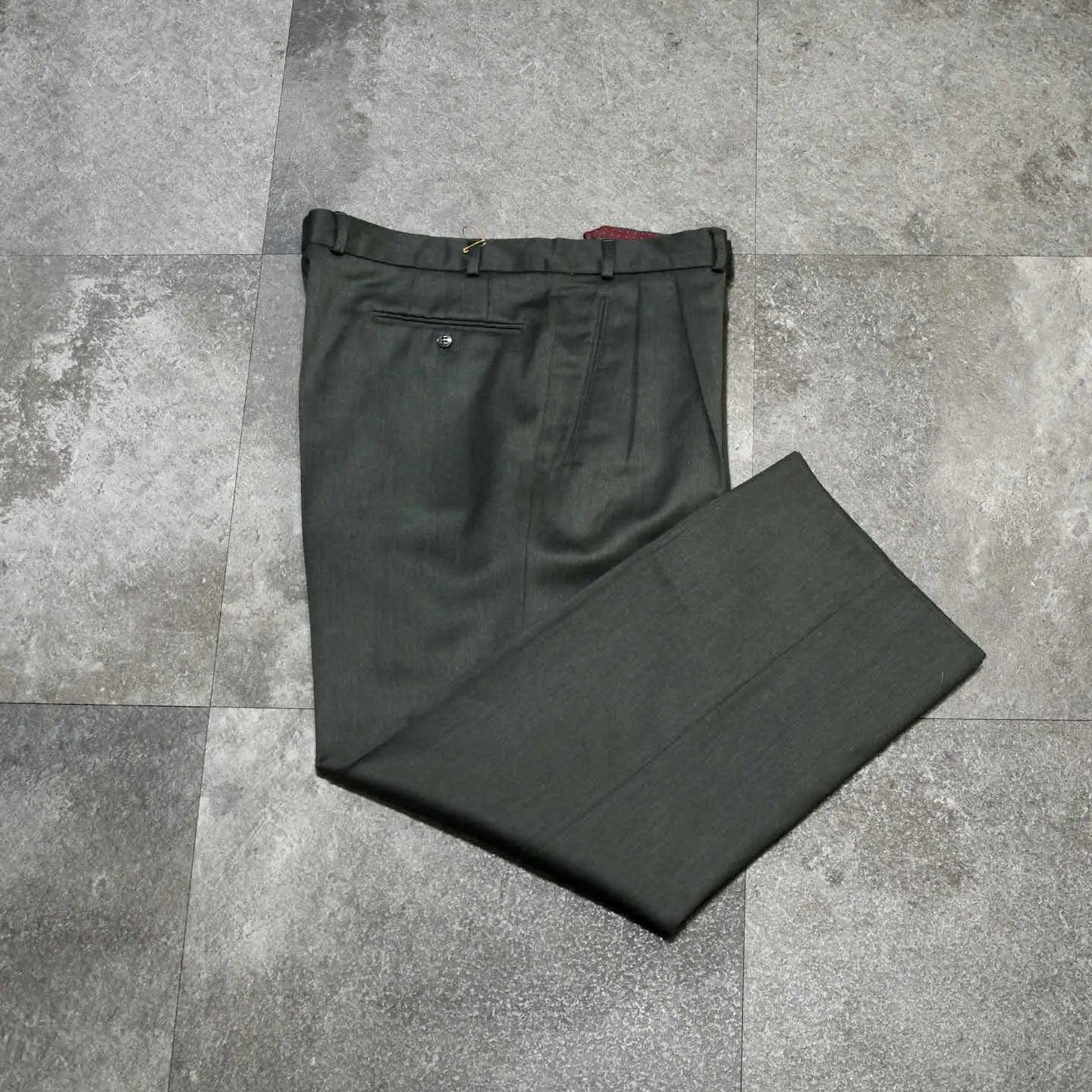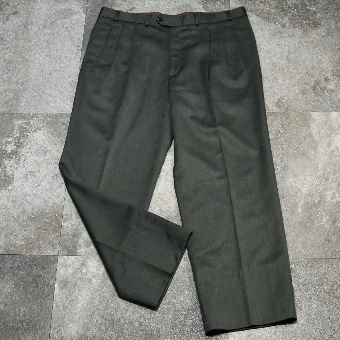 古着 ダークグリーン ウールスラックス 裏地付き タックパンツ ワイドパンツ
