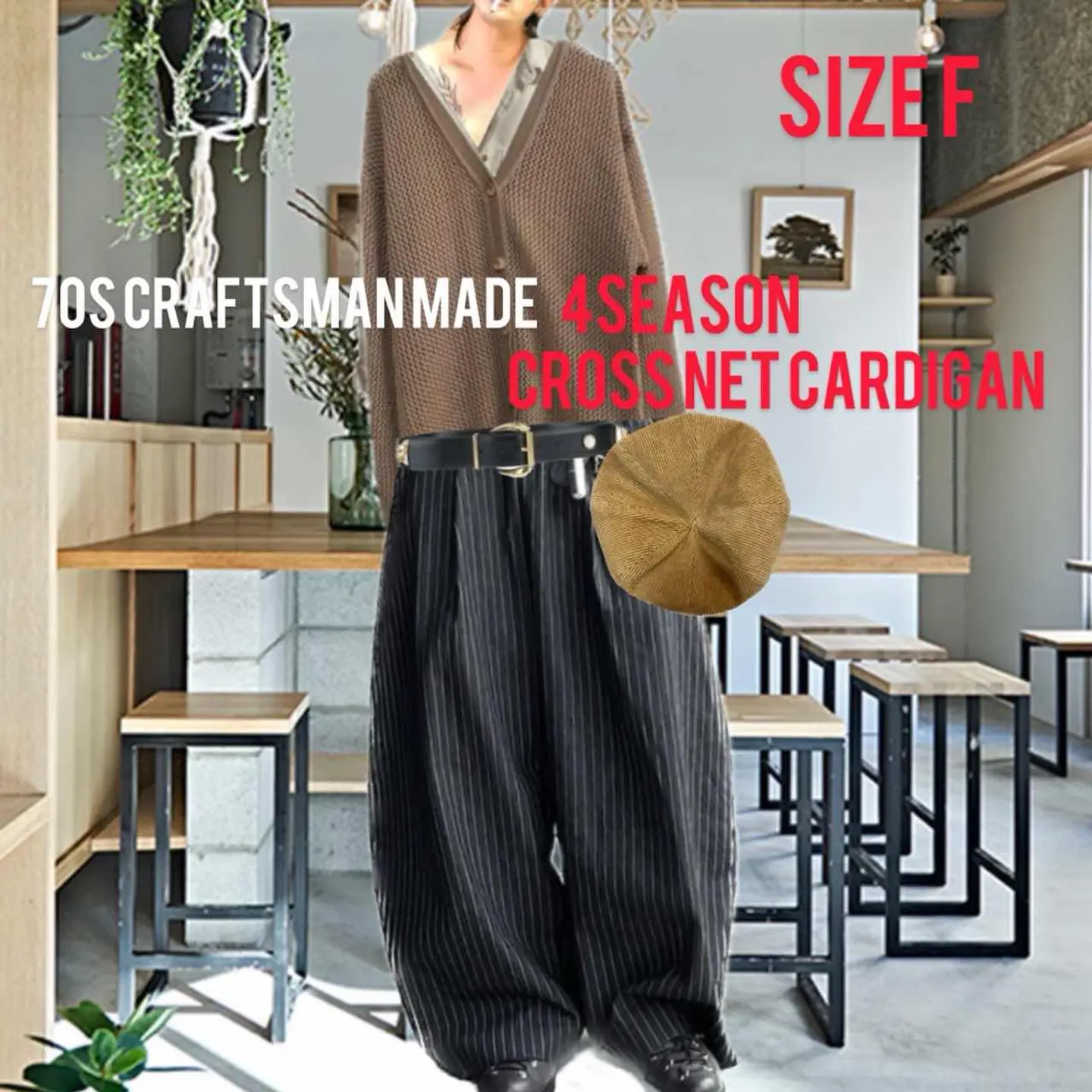70s【極上美品】4S クロスニットクラフトマン メイド カーディガン F クラフトマンメイド職人が関わったクロスニットで織りなされた70年代だからできる。4s cardigan、 4シーズンの、アパレル用語↑ 丁寧に丁寧に作成されていてさらに極上美品 70年代のマテリアルだから、できる独特のカラーリングが落ち着いた。大人の雰囲気と脱力感、さらにクラフトマンが関わっているなっていうのがわかるのが、70年の特徴の着丈が長めなのに、珍しい身幅も広めのオーバーサイズと言うところです。 この時代はとにかく縦に長い服が多いのですが、こちらはゆるだぼっとしていて、fudgeコーデに、最適、 さらにコーディネート参考にしてくださいね。はいウィズ決めてますよね。5箱は下カーディガンではないので、こういう風にテクニックを使うことで、おしゃれはどんどん楽しくなりますので、ぜひ体感下さい。世界に1つのカーディガンがあなたの手元に届きます。 color◁ モカカラー ※ブラウザで異なる場合ありますがかなり実物には、近づけてます、 ▷size◁ 平置き片面採寸【㎝表記】 表記size Fです、oneoff onesize 着丈/82 身幅/65 肩幅/65boxds お洒落すぎるシルエット! 袖丈 /65 DSは袖はハンガー採寸 ※多少の誤差は理解下さい 170/Mジャスト体型の私が着て、✔️参考に ジャスト オーバーサイズ ビックサイズ✔️ 【素材】 おそらくコットンとポリの混紡です、丸洗いOKかつ、即乾く 形崩れ無しのハニーカム 【状態】 美品新品に近いミラクル!! #fudge #mhl #ビックカーディガン #70sカーディガン