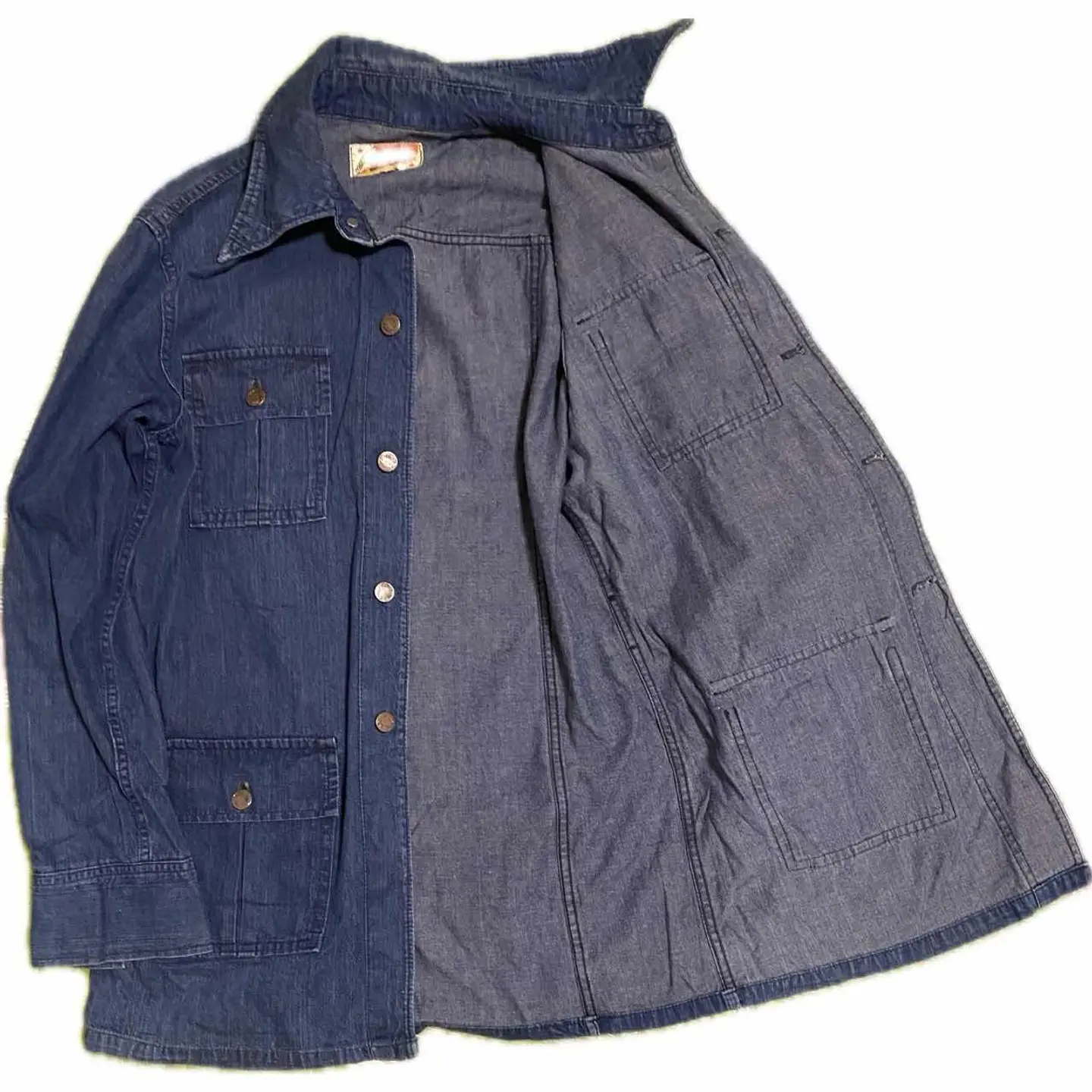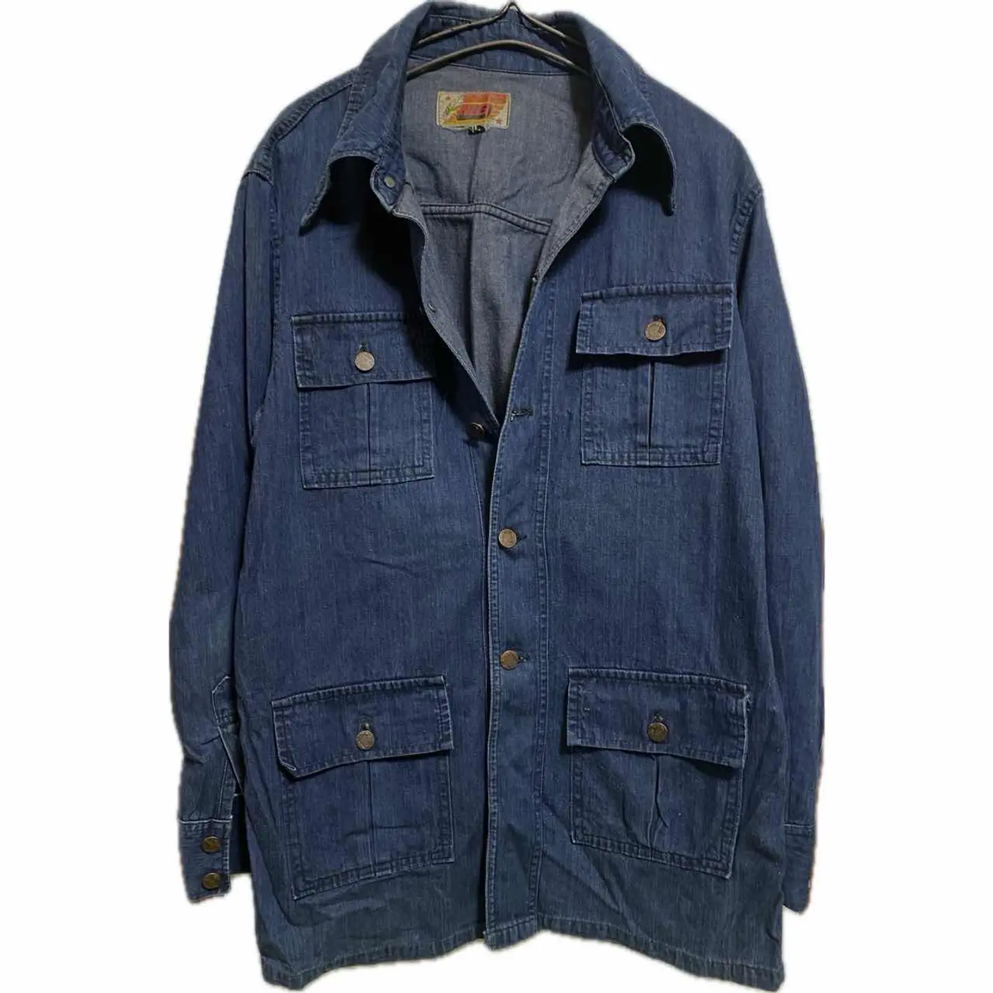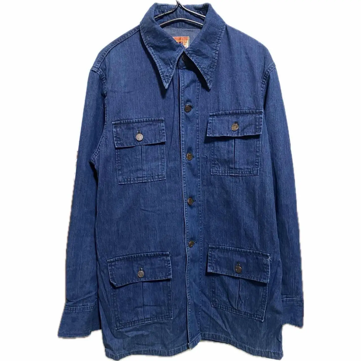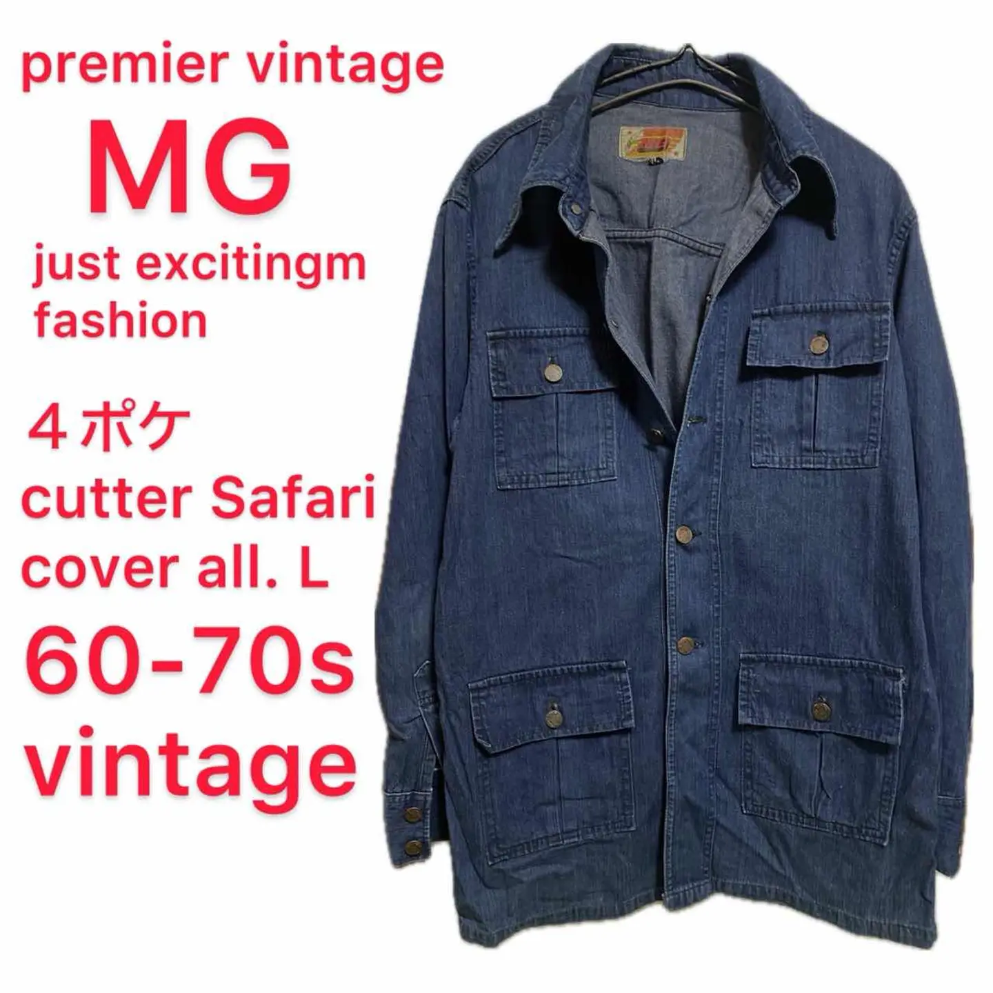 60-70sプレミア【MG】4ポケ カッター Safari coverall L premier vintage limited 【MG】の、デニムサファリカバーオールジャケットです。60.70年代頃の商品で カバーオール的な機能と鋭いカッター襟が、ヴィンテージの雰囲気抜群、 ヴィンテージ確認ポイントは全てチェックで写真に載せております。 自由を求めた時代のかっこよすぎるデニムジャケットを現代風にレイヤードアメカジ、 ウールオルテガベストとペインターパンツときめこんであなたのセンスを見せつけてください。確実にあなたのお宝になるのは間違いありません。 ↓【歴史】 イブサンローラが60s発表したことにより世界的に人気がついた、Safariジャケット、次↓ ファッションは自由だと言う概念からワークアイテムだったデニムジャケットを自由を求めるヒッピーの方たちが取り入れ始めた。それがこのデニムジャケットSafariとかの始まりと言われています。 そして現代おしゃれマスターたちがこの年代背景とスタンスにリスペクトして火がついているこのジャケット、ぜひあなたのワードローブに取り入れてください ▷color◁ 大人気の濃紺 ※ブラウザで異なる場合ありますがかなり実物には、近づけてます、 ▷size◁ 平置き片面採寸【㎝表記】 表記size 着丈/80 身幅/53 肩幅/47 袖丈 /64 DSは袖はハンガー採寸 ※多少の誤差は理解下さい 170/Mジャスト体型の私が着て、✔️参考に ジャスト オーバーサイズ✔︎ ビックサイズ 【素材】 denim 【状態】 よい、程よい雰囲気が、今後どんどん、あなただけ1着にそだちます、 検品、洗濯、検品で、3回チェックして発送しますので、ご安心して、お買い求め下さい!!