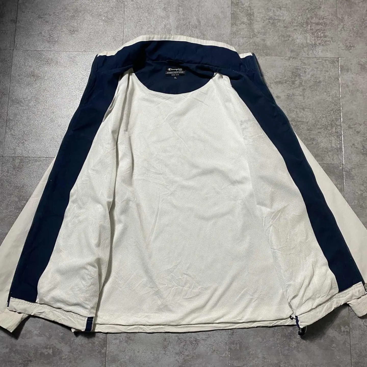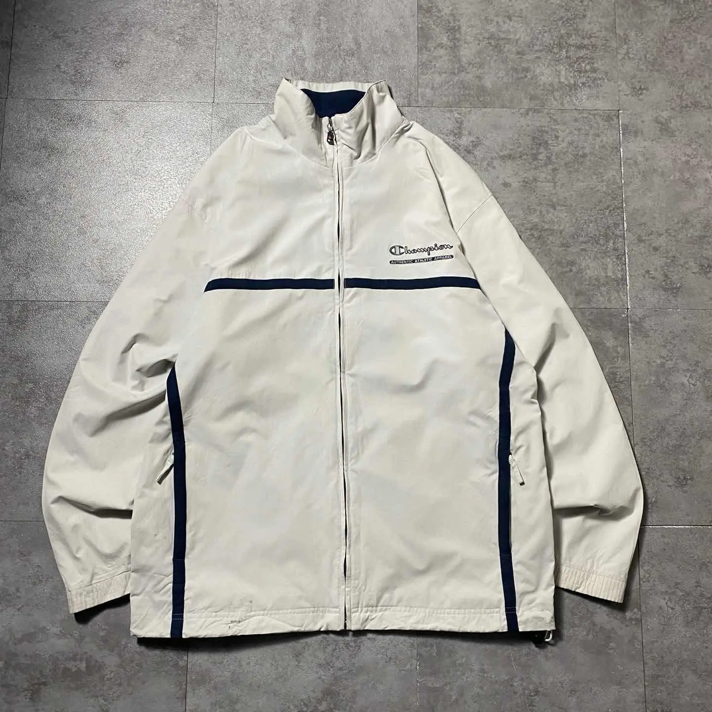 【XL】00's チャンピオン 刺繍ワンポイント アイボリー ナイロンジャケット