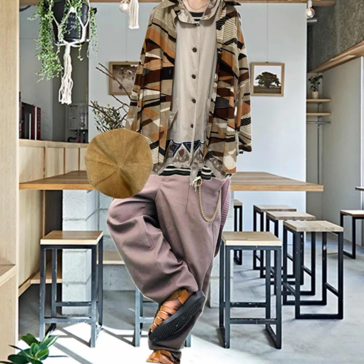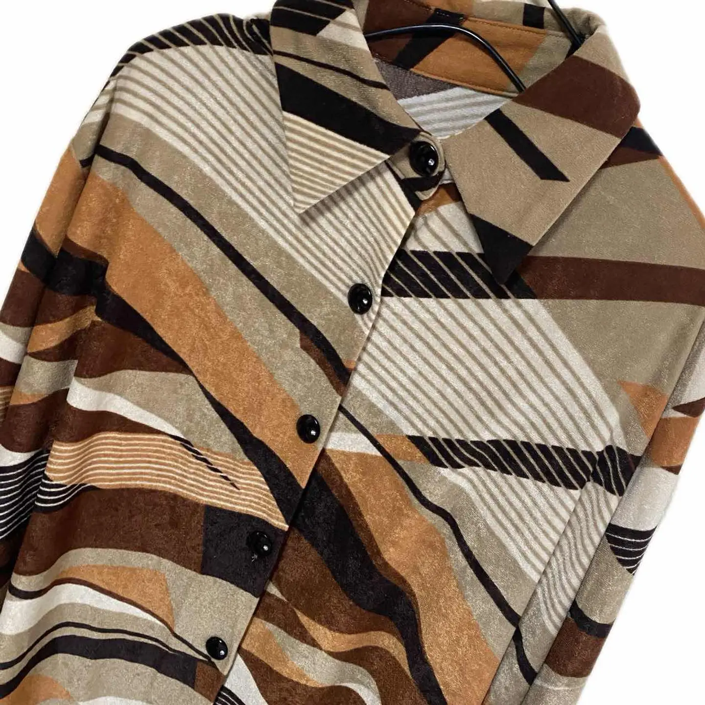 60sorder maid サイケデリック幾何学 ベロアシャツ チンスト 60年代から70年にかけての自由を求めた時代の個性的なサイケデリック幾何学ベロアシャツです。 状態もめちゃくちゃ良くて、さらに程良い脱力感があなたのおしゃれのアップデートに役立つと思います。コーディネートのようにインナーにエキゾチックなシャツを重ねてワークパンツでパーフェクトになりますので、参考になりましたらぜひください。 年中活躍します。シルエットチンストで、いっぱつでヴィンテージとわかる高級感のある1着となっておりますので、あなたのおしゃれのコレクションに加えてみてはいかがですか? ▷color◁ 写真参照 ※ブラウザで異なる場合ありますがかなり実物には、近づけてます、 ▷size◁ 平置き片面採寸【㎝表記】 表記size 着丈/75 身幅/60 肩幅/56DS 袖丈 /64↓ DSは袖はハンガー採寸 ※多少の誤差は理解下さい 170/Mジャスト体型の私が着て、✔️参考に ジャスト オーバーサイズ✔︎ ビックサイズ 【素材】 ベロア 【状態】 美品 検品、洗濯、検品で、3回チェックして発送します、 #チンスト #ワコマリア #サイケデリックシャツ #個性派