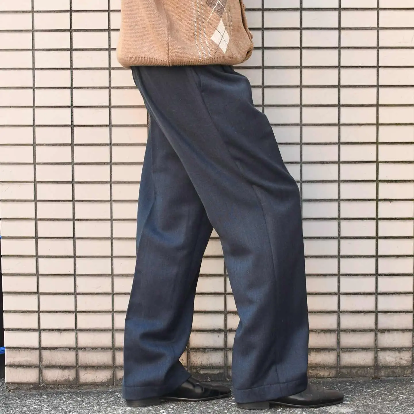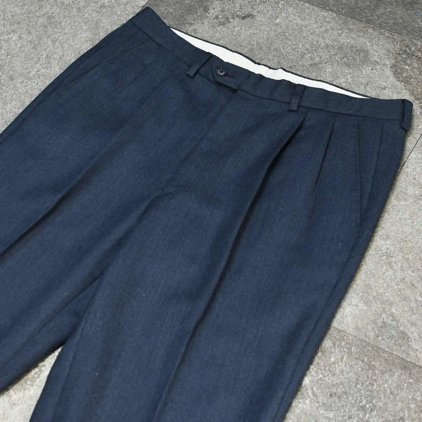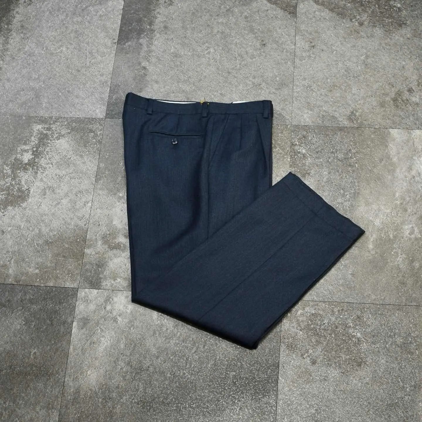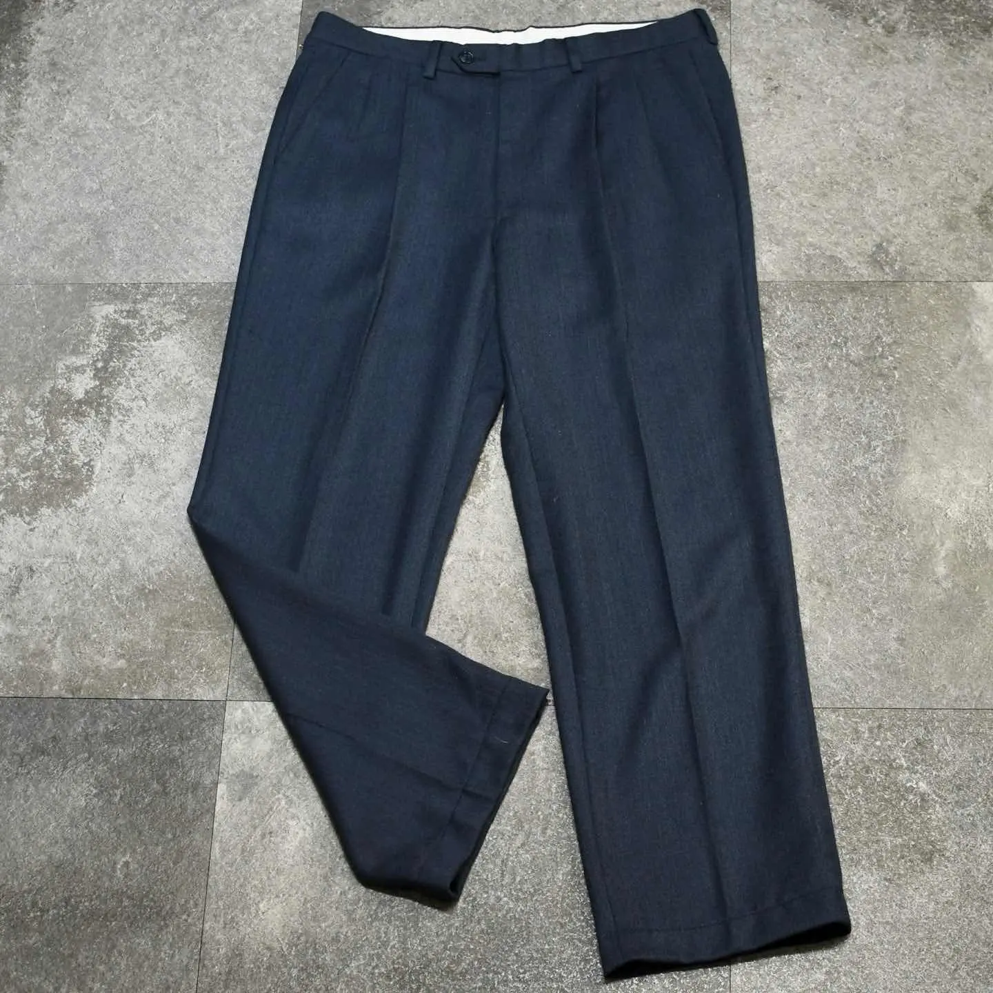 古着 ネイビー ウールスラックス スラックス タックパンツ ワイドパンツ 紺色