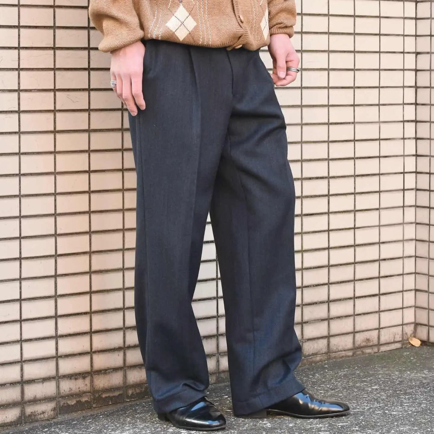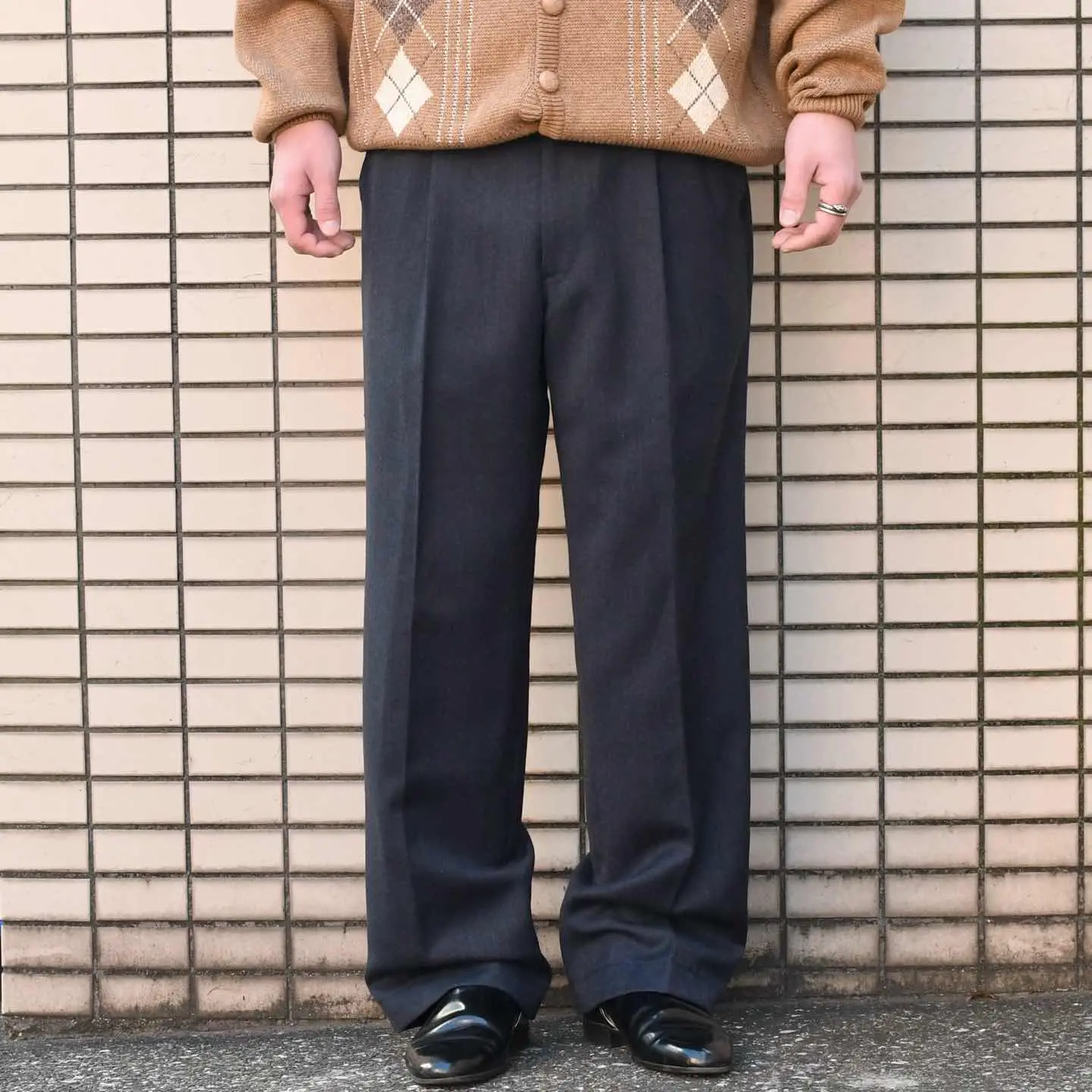 SIZE - ウエスト84cm 総丈100cm 股下73cm わたり34cm 裾幅23.5cm fabric/質感よりwool 着用画像 173cm/58kg (前見頃に脛まで裏地) 黒スラックスはもう手元にある方、 そして黒スラックスをお持ちでない方は、 あえてこのカラーを選んでみるのもどうでしょう。 黒スラックスとの差別化になるのはもちろん、 ウールの繊細な発色は上品さを纏い、思いの外 がらっと雰囲気が変わるのを感じるのではないでしょうか。 その上品さを崩さない程度の 程よい太さのあるシルエットで幅広いトップスと 合わせられるのも◎ ※右もも付近に軽い生地の傷みあり。 ※色味に関しましては、物撮りを参考に お願いいたします。 ※裾上げ等のレングス直しにつきましては、 購入前に、必ずご連絡お願い致します。 ※撮影状況により、実物と多少色が異なる 場合がございます。 ※古着を取り扱っているため、気づかない汚れや ほつれがある場合がございます。 ※サイズは着用感で選んでおり、 表記サイズは説明欄の最初に記載しております。 old vintage ヴィンテージ used 80's 90's アメリカ古着 ユーロ古着 POLO RALPH LAUREN Eddie Bauer OLD GAP LANDS' END ランズエンド LLBean エルエルビーン オールドギャップ エディーバウアー ラルフローレン ブルックスブラザーズ Brooks Brothers ウールパンツ などがお好きな方 #vintage #old #used #90s #80s #古着 #ヴィンテージ #LLBean #エルエルビーン #LANDSEND #ランズエンド #NAUTICA #ラルフローレン #POLORALPHLAUREN #ブルックスブラザーズ #BrooksBrothers #スラックス #ワイドパンツ #タックパンツ #ウールパンツ #ウールスラックス