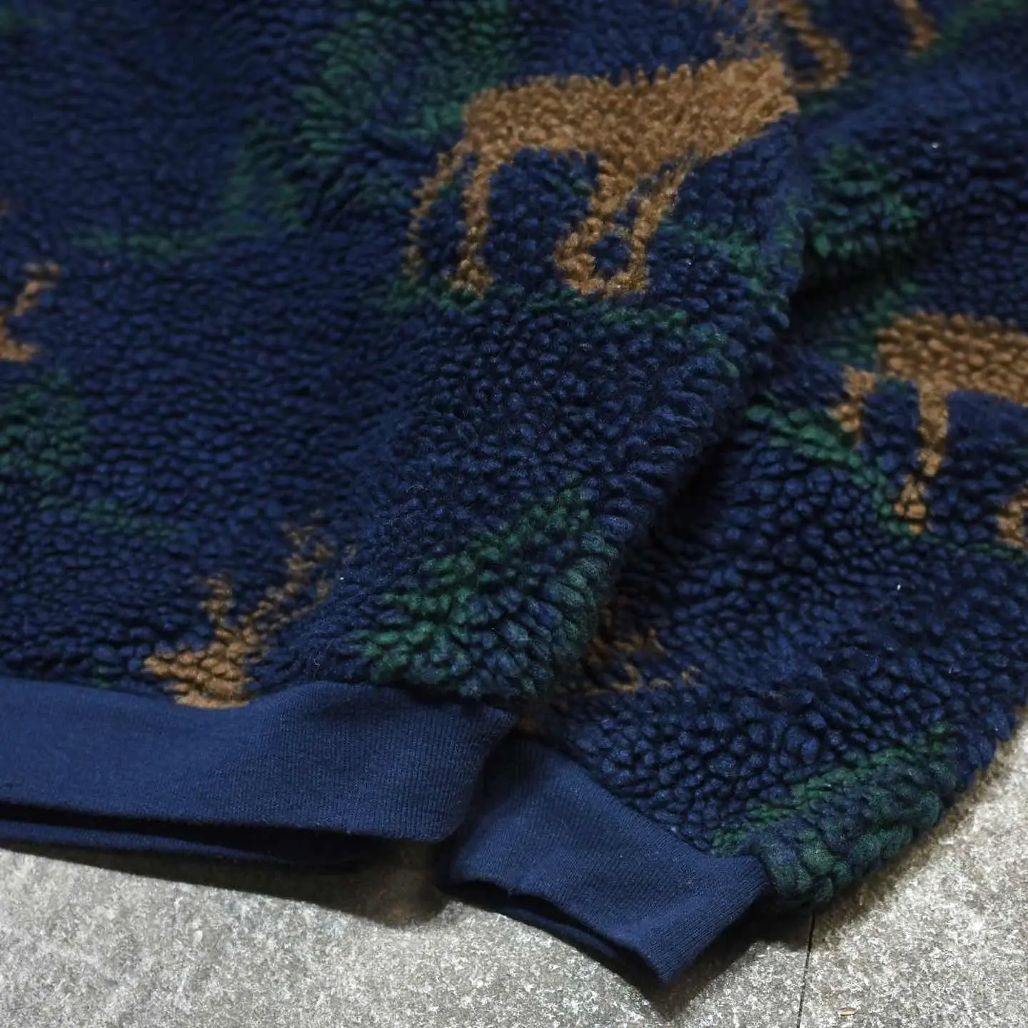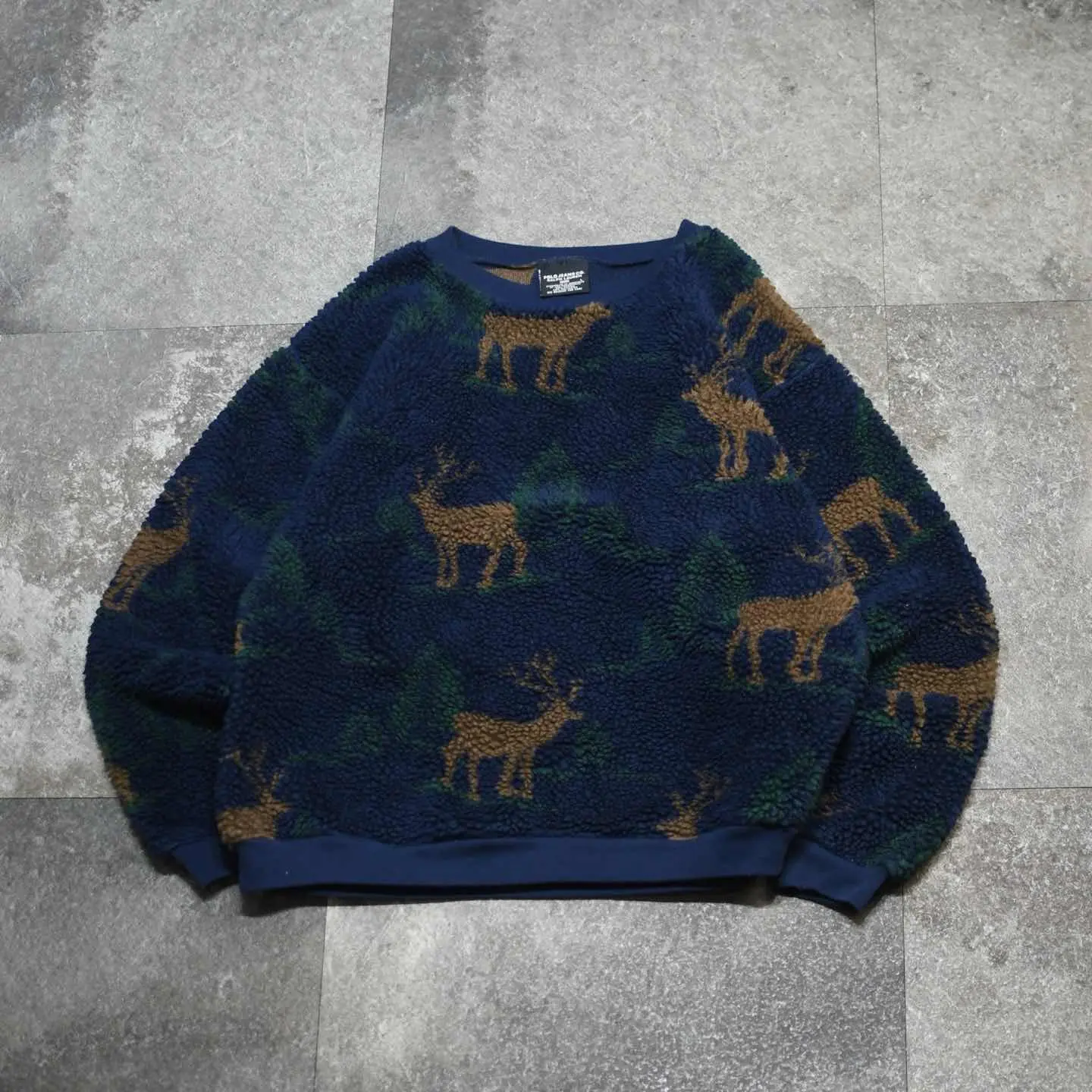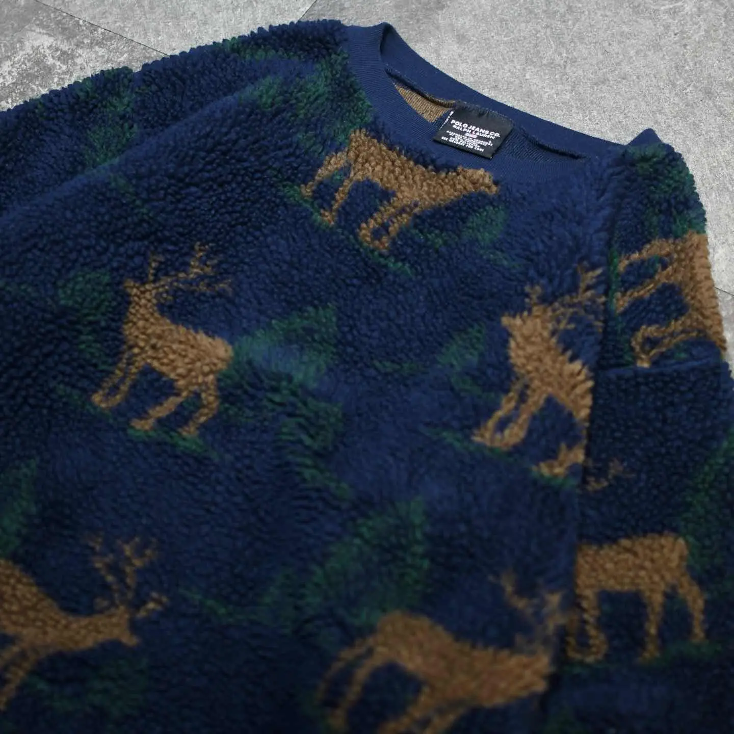 古着 polo jeans co. 総柄 鹿 フリース プルオーバー スウェット