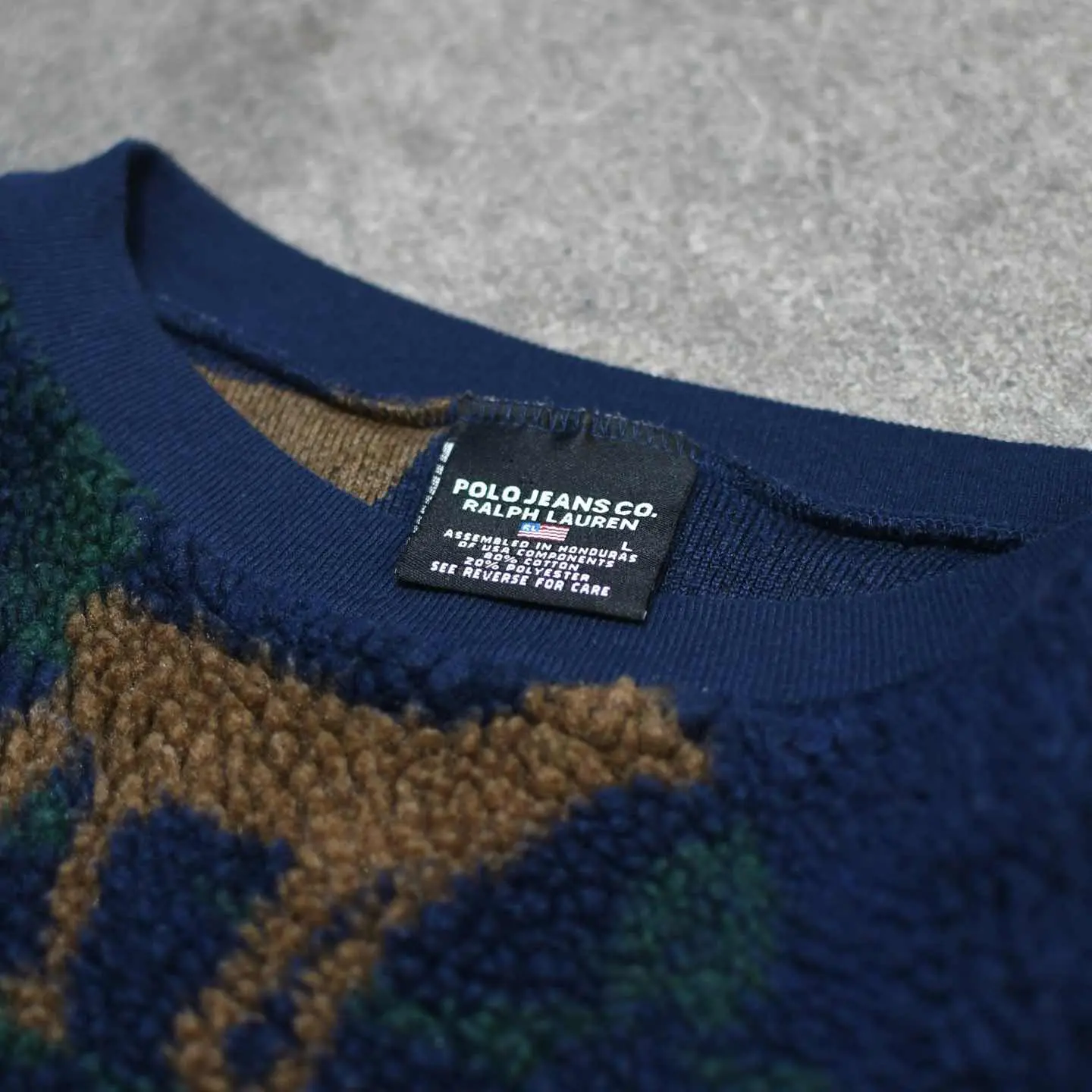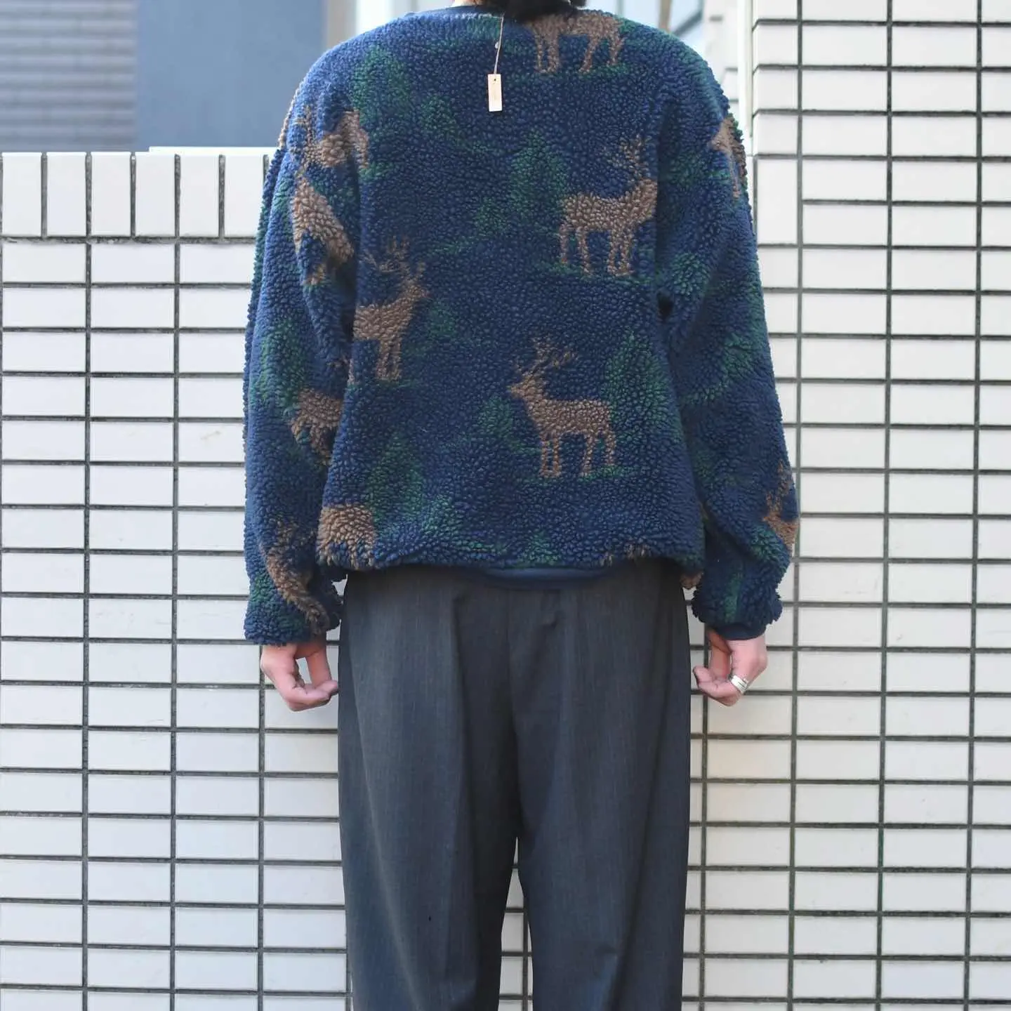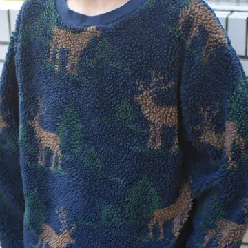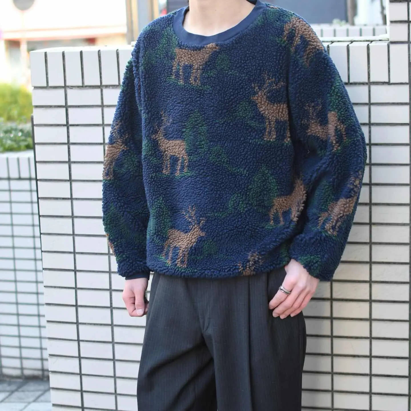 古着 polo jeans co. 総柄 鹿 フリース プルオーバー スウェット