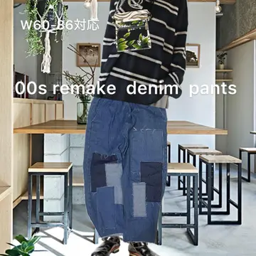00s ヴィンテージリメイクデニムパッチ、アートボトム S-L対応 年中活躍、さらに裾クラッシュの心配もない。丈、 足元のおしゃれも楽しめる。さらにウェストが調節可能なので、杯にも籠にもできるので、好きな気分で上げ下げして、クロップドにもfull-lengthにもできる本も作りたかったのでつくりました。 私ケチじゃないので、惜しみなく、2000年のデッドストックの手にもぶっ壊し、TCデニムをですよ? さらに、4本のデニムを、カットして、フロントに、縫い付けました!! 着用すると、ゆるっとしたウェストが絞られているので、カープタイプになってめちゃくちゃオシャレです。 さらにヴィンテージのシャツとかダッフルジャケットとか寒い日はこれでかっこいいですし、季節があればゆるだぼニットとかボリュームのあるトップスを合わせたりTシャツでもかっこいいですね。 その秘密はインパクトがあるからです。それではお気に召しましたら、即ゲット下さい!! 着回しが抜群なのは、あなたのおしゃれが確実にアップデートされることを保証いたします ▷color◁ 大人気の濃紺 ※お使いのブラウザにより色が変わってみえる場合あります ▷size◁ 平置き片面採寸【㎝表記】 表記size 【※ウエストのみ、メジャーで一周採寸】 ウエスト60-86対応!! 股上40 股下53 好きな位置で、ウエストあげれば、 クロップドにも、フルレングスにもなる、 腿渡り幅30 裾幅30ナチュラルな大人ストレート モデル170㎝/普通体型、30インチジャストな体型、参考に ▷material◁ 斜織 TC コットンデニム 帝人.東レ の、特許所得最高級のコットンです シワにならない、洗濯機丸投げOK ▷condition◁ 新品未使用デッドストックを使いましたので ※入念にチェックは、しておりますが、vintage/usedの特性ご理解下さい