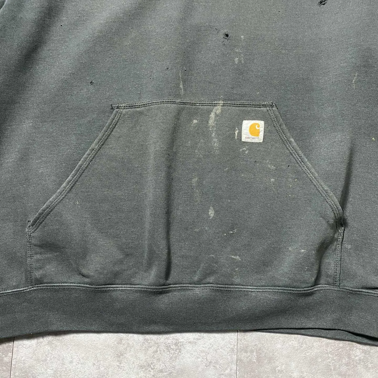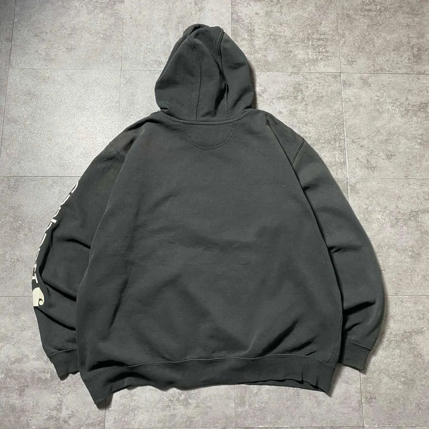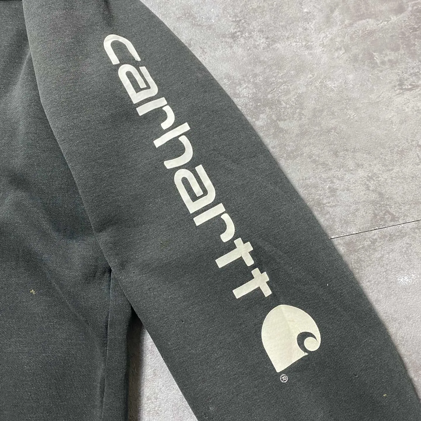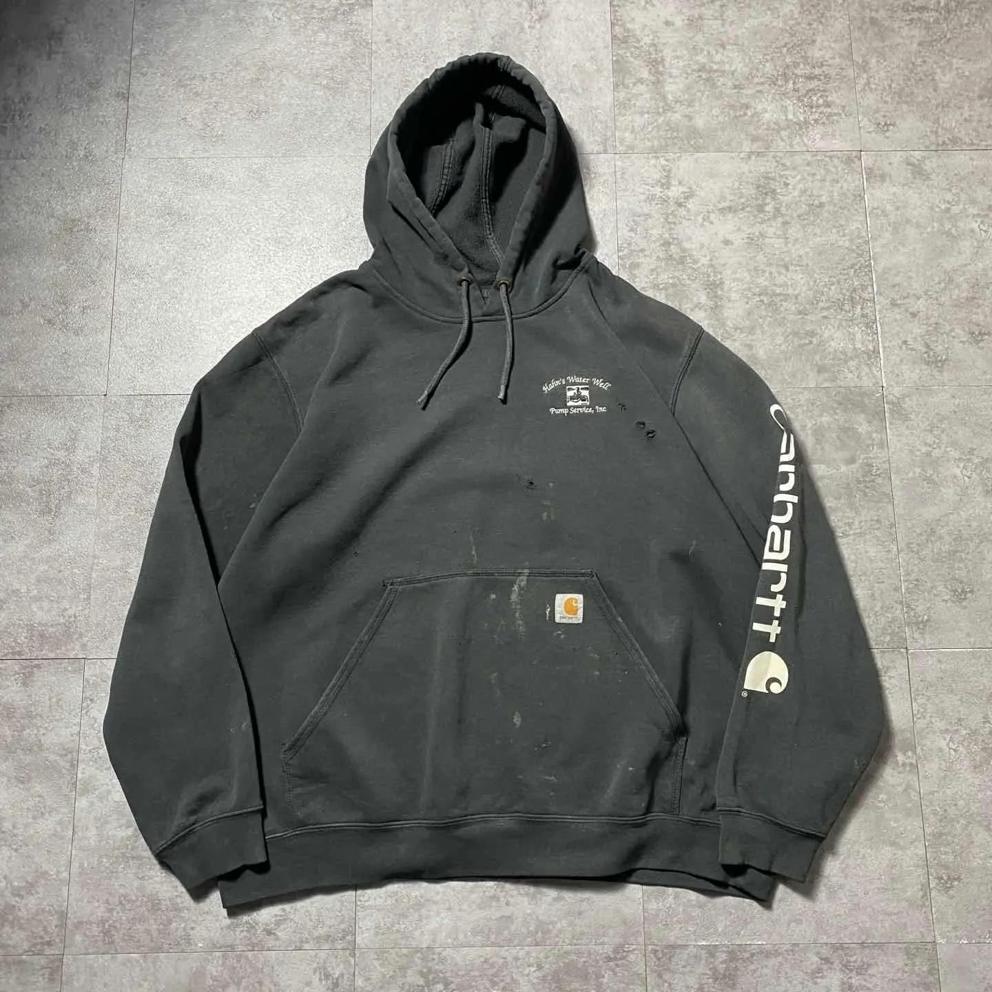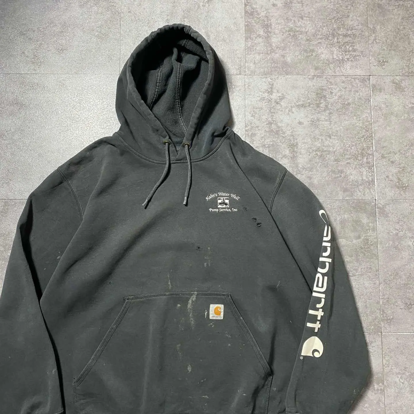 【XL】カーハート 刺繍企業ロゴ アームプリント グッドダメージ パーカー