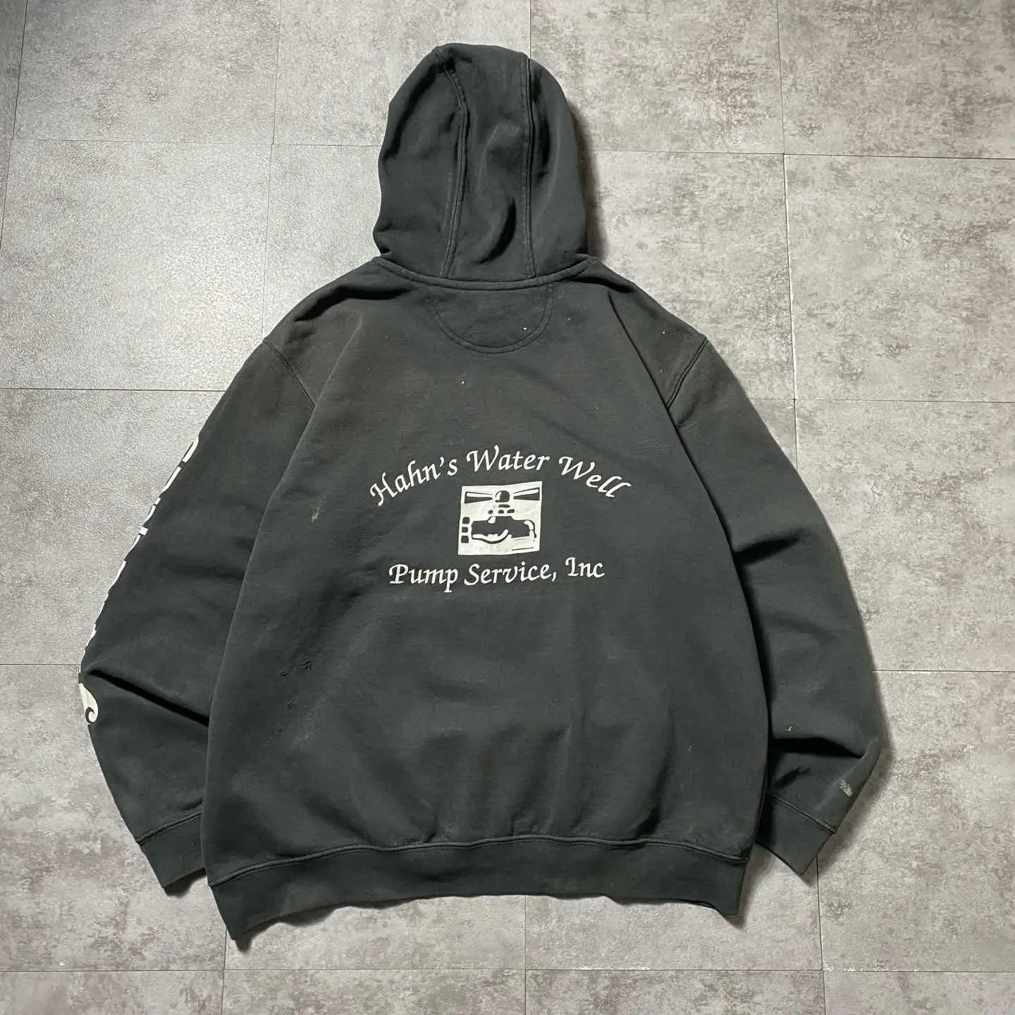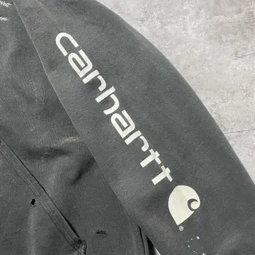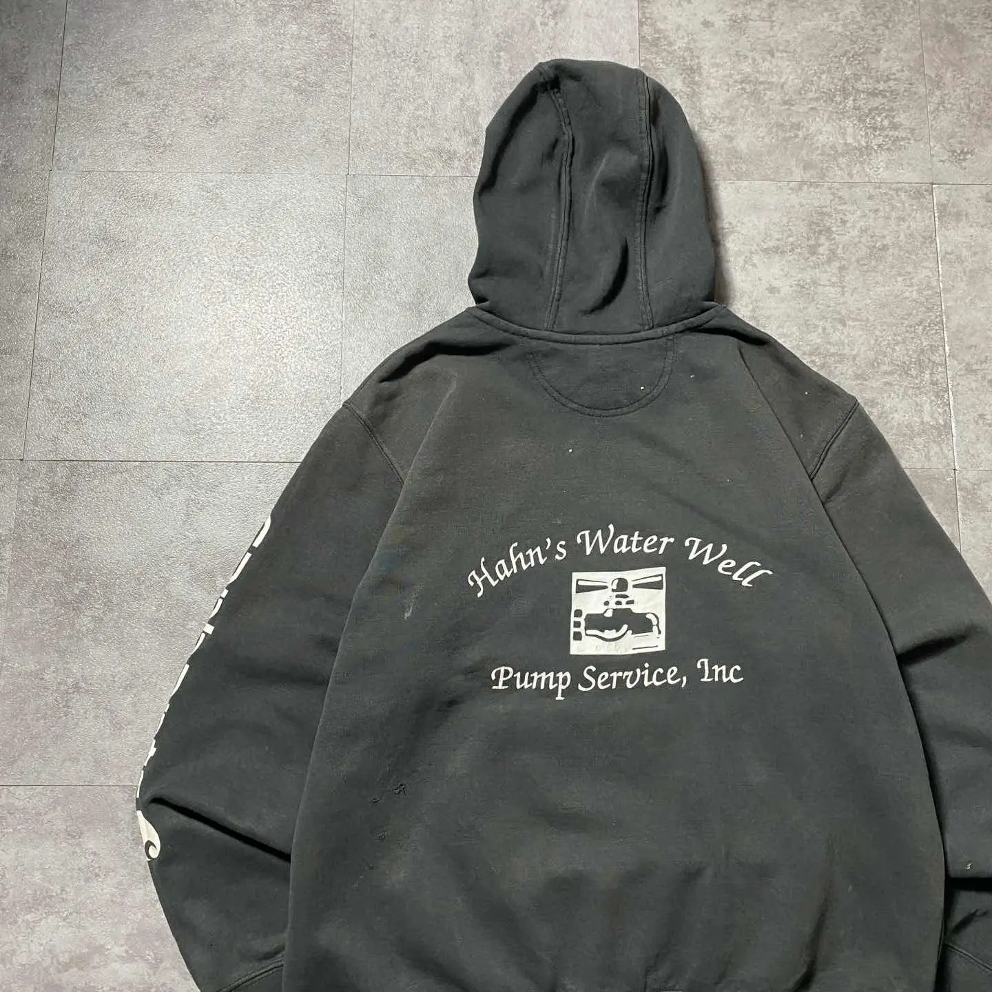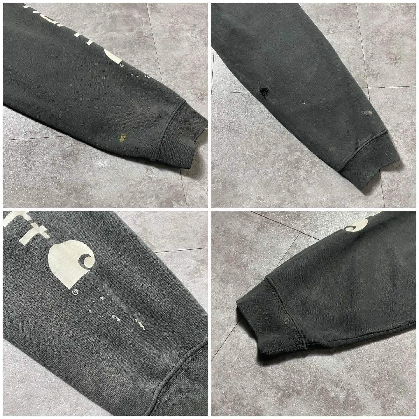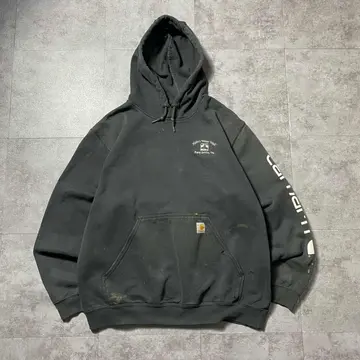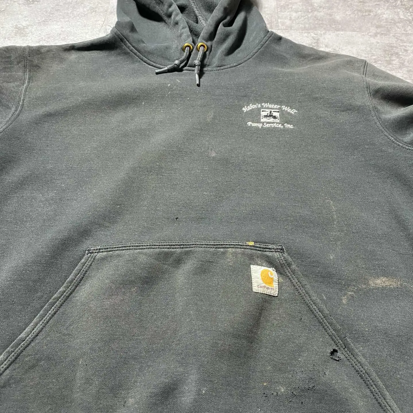【XL】カーハート 刺繍企業ロゴ アームプリント グッドダメージ パーカー