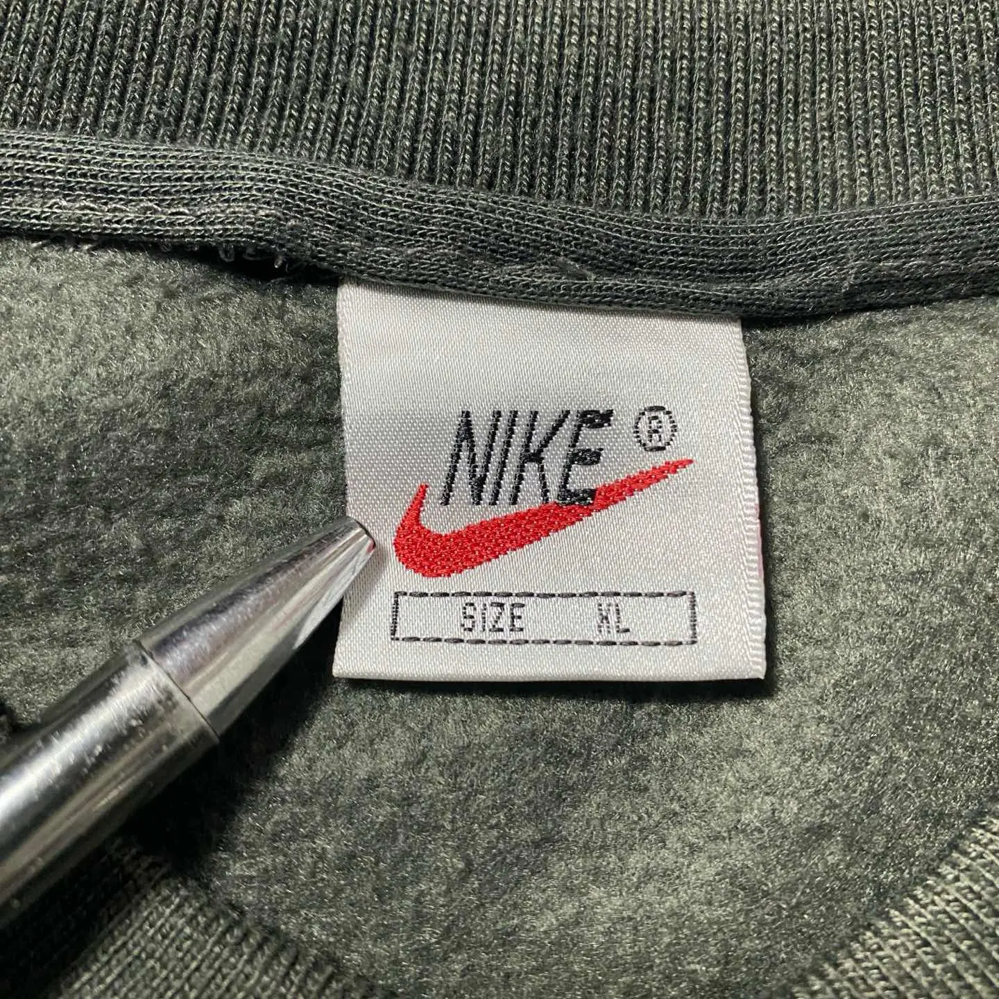 【Size:XL】90's NIKE boot leg ナイキ ブート スウォッシュ 刺繍ワンポイント カーキグリーン スウェット トレーナー