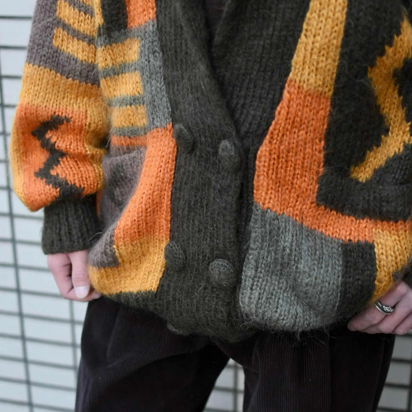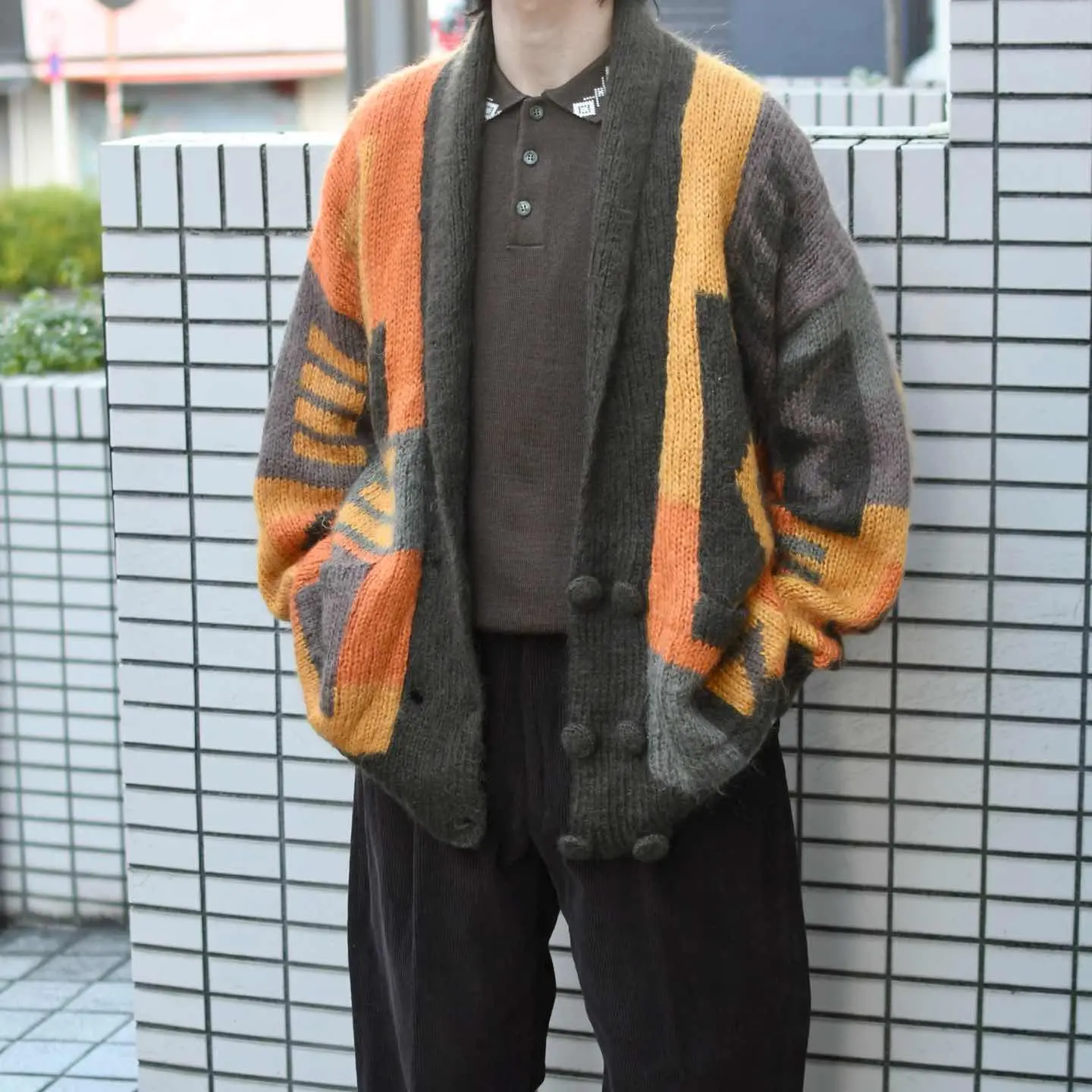 古着 デザイン モヘアカーディガン カーディガン ダブルフロント セーター