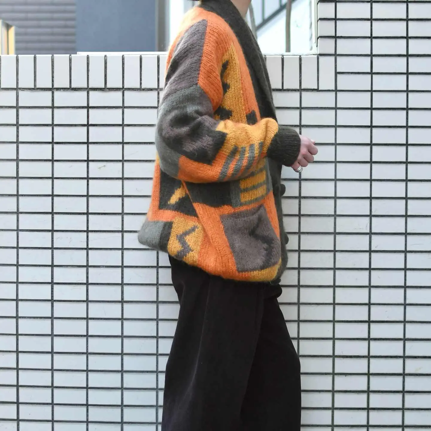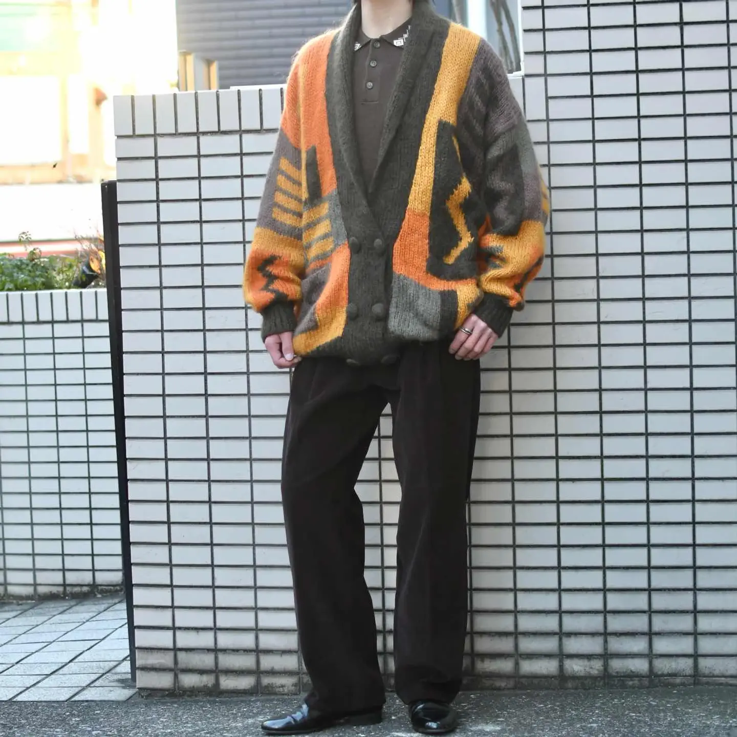 SIZE:L 着丈77cm 肩幅72cm 身幅75cm 袖丈62cm fabric/mohair・acrylic 着用画像 173cm/58kg あくまでも個人的な意見ですが、古いモヘア カーディガンよりも個性のある、こんなモヘア カーディガンが大好きです。 モヘア特有の毛足の長さや色使い、 首元のショールカラー、そしてダブルのフロント、 ハンドニットの中でも群を抜いたクオリティの高い 作りに惹かれました。 インナーは色を拾って合わせ、コーデの主役として 落とし込みたいなと。 ライチュウみたいな色使い...可愛いやつ。 ※撮影状況により、実物と多少色が異なる場合が ございます。 ※古着を取り扱っているため、気づかない汚れや ほつれ等がある場合がございます。 ※サイズは着用感で選んでおり、 表記サイズは説明欄の最初に記載しております。 オーバーサイズ old vintage ヴィンテージ used 80's 90's アメリカ古着 ユーロ古着 POLO RALPH LAUREN Eddie Bauer OLD GAP LANDS' END ランズエンド LLBean エルエルビーン オールドギャップ エディーバウアー ラルフローレン ブルックスブラザーズ Brooks Brothers デザインニット ニット などがお好きな方 #vintage #オーバーサイズ #old #used #90s #80s #古着 #ヴィンテージ #アメリカ古着 #ユーロ古着 #LLBean #エルエルビーン #EddieBauer #エディーバウアー #oldgap #オールドギャップ #LANDSEND #ランズエンド #NAUTICA #ノーティカ #ラルフローレン #POLORALPHLAUREN #ブルックスブラザーズ #BrooksBrothers #モヘアカーディガン #カーディガン #デザインカーディガン #セーター