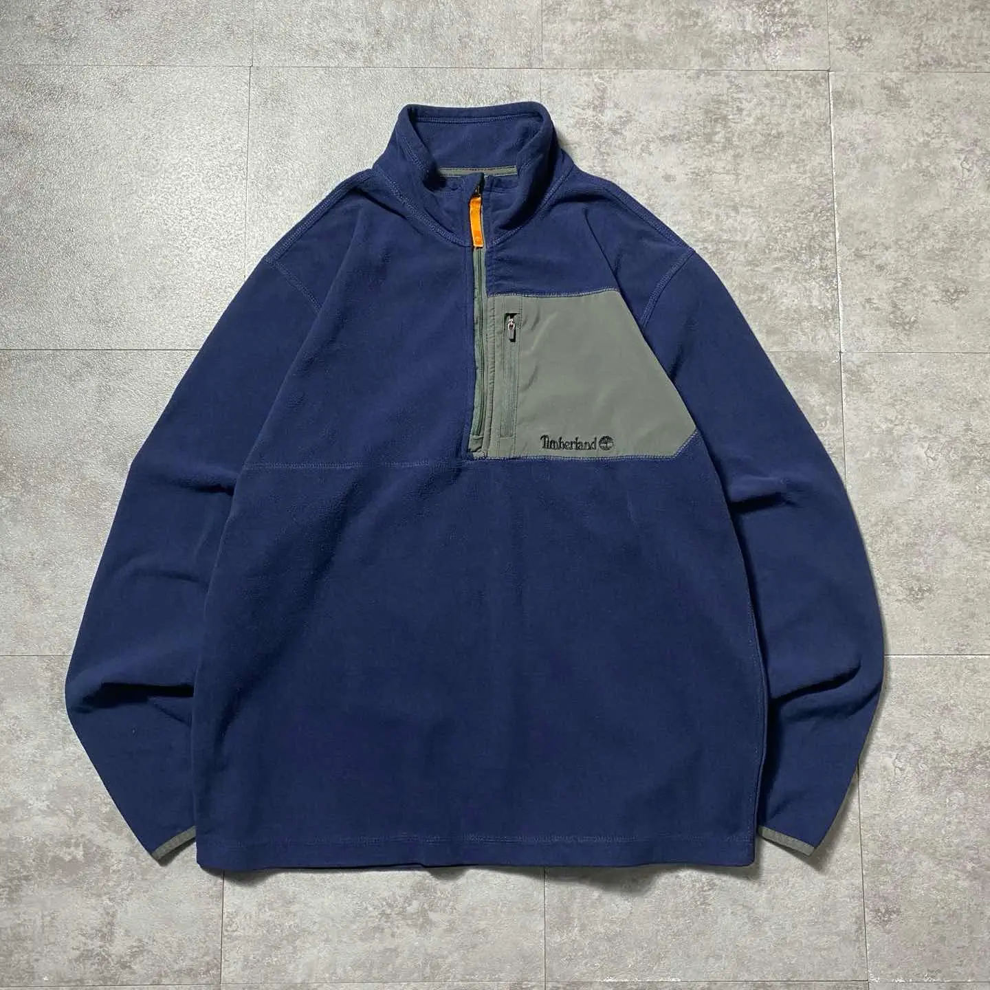 Timberland ハーフジップ 刺繍ロゴ フリーススウェット トレーナー
