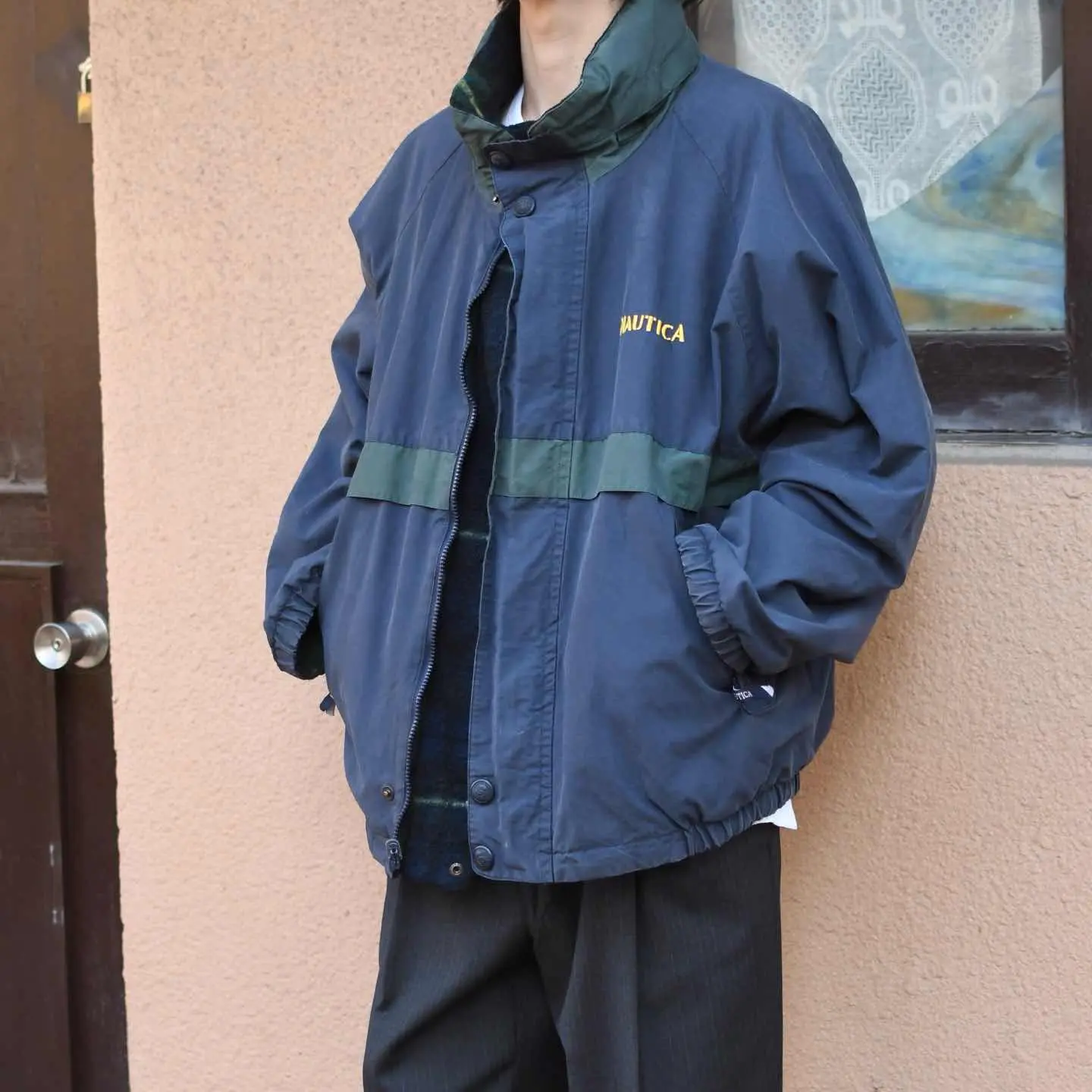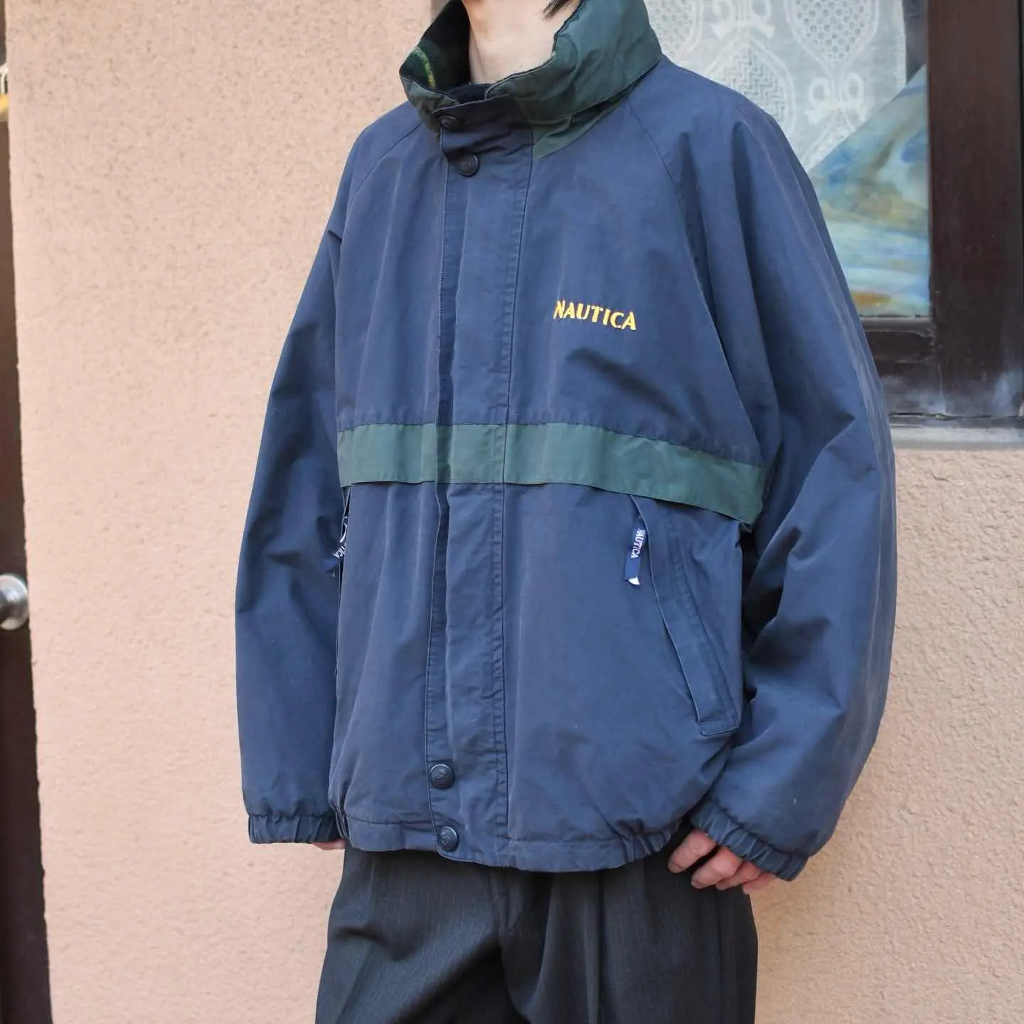 古着 NAUTICA リバーシブル ブルゾン コットンナイロン フリース