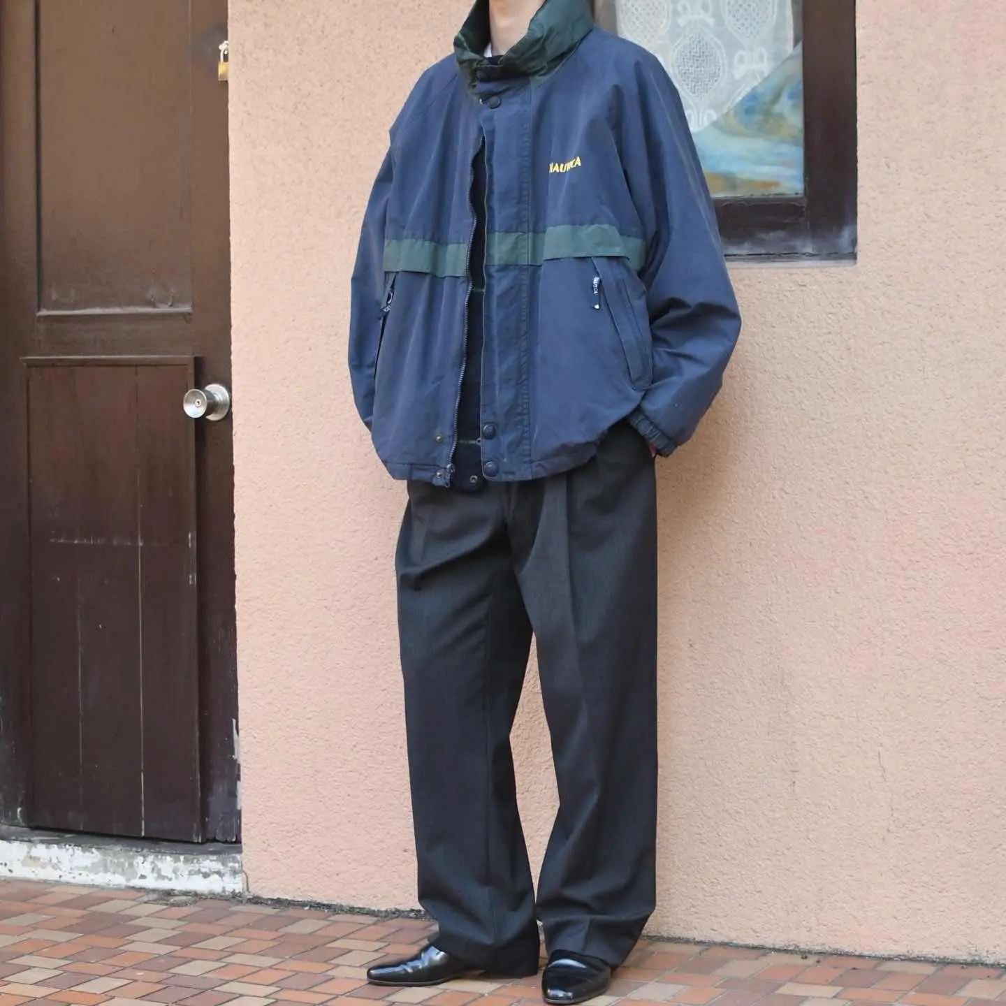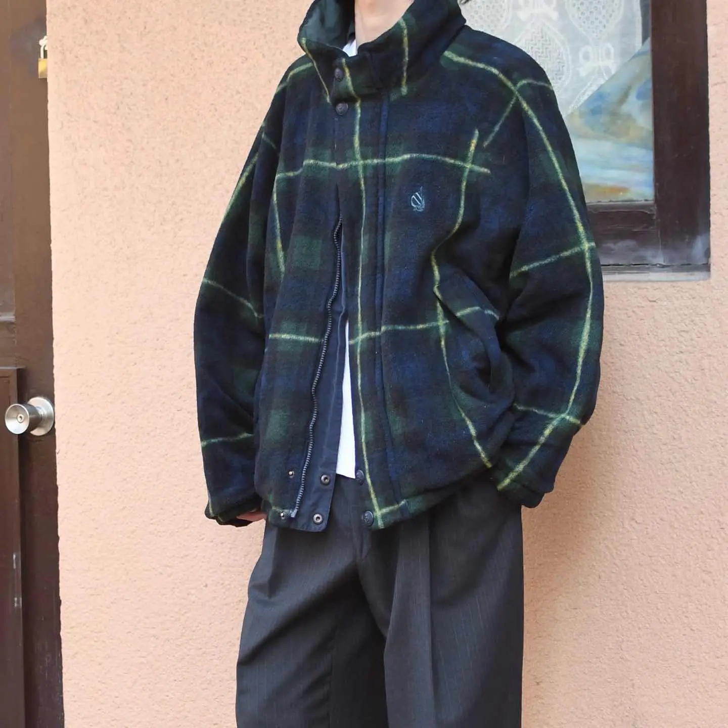 SIZE:L 着丈68cm 身幅69cm 裄丈94cm fabric/cotton・nylon・poly 着用画像 173cm/58kg NAUTICAが手掛ける、 この手のリバーシブルブルゾン、 コットンナイロン素材の配分から両面の色使いまで、いつ見ても良いなぁと思わせてくれます。 コットンを主としたコットンナイロンだからこそ、 シャリ感が少なくやや褪せた生地感で スタイリングに馴染むA面。 ありそうでない、派手さが無いのに 独特な色使いをしたフリースのB面。 毎度玄関先でどちらの面にするか 悩ませてくれそうです。 ※背面左肩、右袖付近にアタリあり。 ※撮影状況により、実物と多少色が異なる場合が ございます。 ※古着を取り扱っているため、気づかない汚れや ほつれ等がある場合がございます。 ※サイズは着用感で選んでおり、 表記サイズは説明欄の最初に記載しております。 オーバーサイズ old vintage ヴィンテージ used 80's 90's アメリカ古着 ユーロ古着 POLO RALPH LAUREN Eddie Bauer OLD GAP LANDS' END ランズエンド LLBean エルエルビーン オールドギャップ エディーバウアー ラルフローレン ブルックスブラザーズ Brooks Brothers 緑 ナイロンジャケット ジャケット などがお好きな方 #vintage #オーバーサイズ #old #used #90s #80s #古着 #ヴィンテージ #アメリカ古着 #ユーロ古着 #LLBean #エルエルビーン #EddieBauer #エディーバウアー #oldgap #オールドギャップ #LANDSEND #ランズエンド #NAUTICA #ノーティカ #ラルフローレン #POLORALPHLAUREN #ブルックスブラザーズ #BrooksBrothers #ブルゾン #リバーシブル #ジャケット