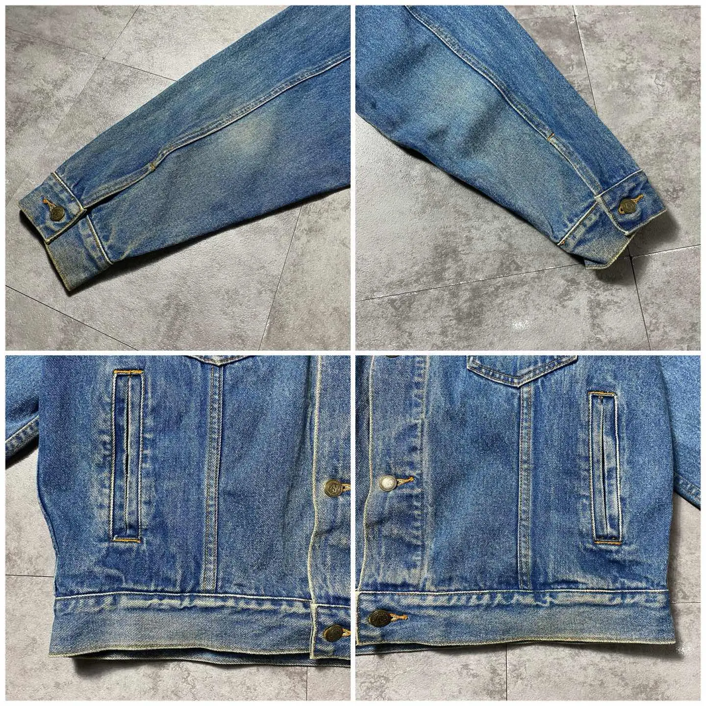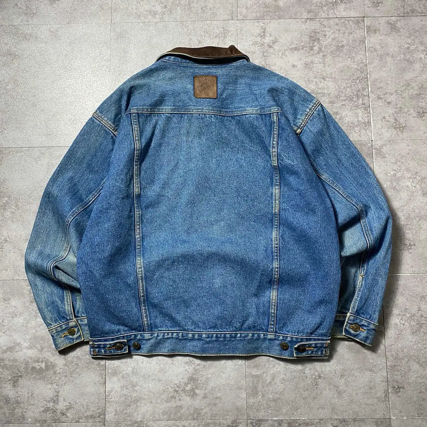 ○Size○ 表記→L ・着丈67 ・身幅65 ・肩幅56 ・袖丈59 (cm) ○Color○ ・デニム紺 ○Material○ ・100%コットン ○Condition○ ・襟元レザー部分、多少のダメージあり ・両袖肘あたりフェード感あり ○Caution○ 当店で取り扱っている商材は全て『古着』となっております。 そのため、多少の状態難(ほつれ、傷、汚れ、リブの伸び、使用感、擦れ、色あせ、etc)がある場合がございます。 新品同様の完璧なお品物をお求めの方は当店でのお買い物を控えて頂きますよう宜しくお願いします。 また、購入された商品に関しましては、購入日時から起算して『72時間以内に』発送手続きの方を取らせて頂きます。 お急ぎの場合は購入前に当店オンラインストアの方にお問い合わせ頂きますよう宜しくお願いします。 26/269