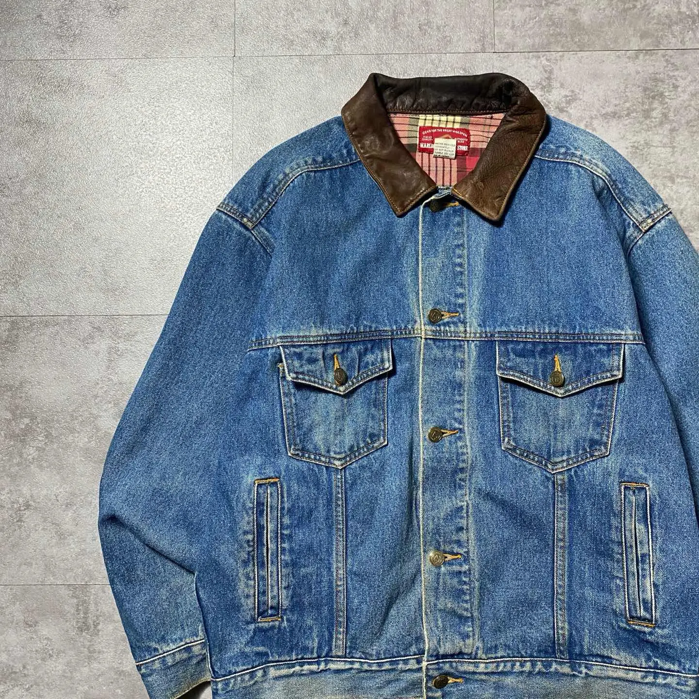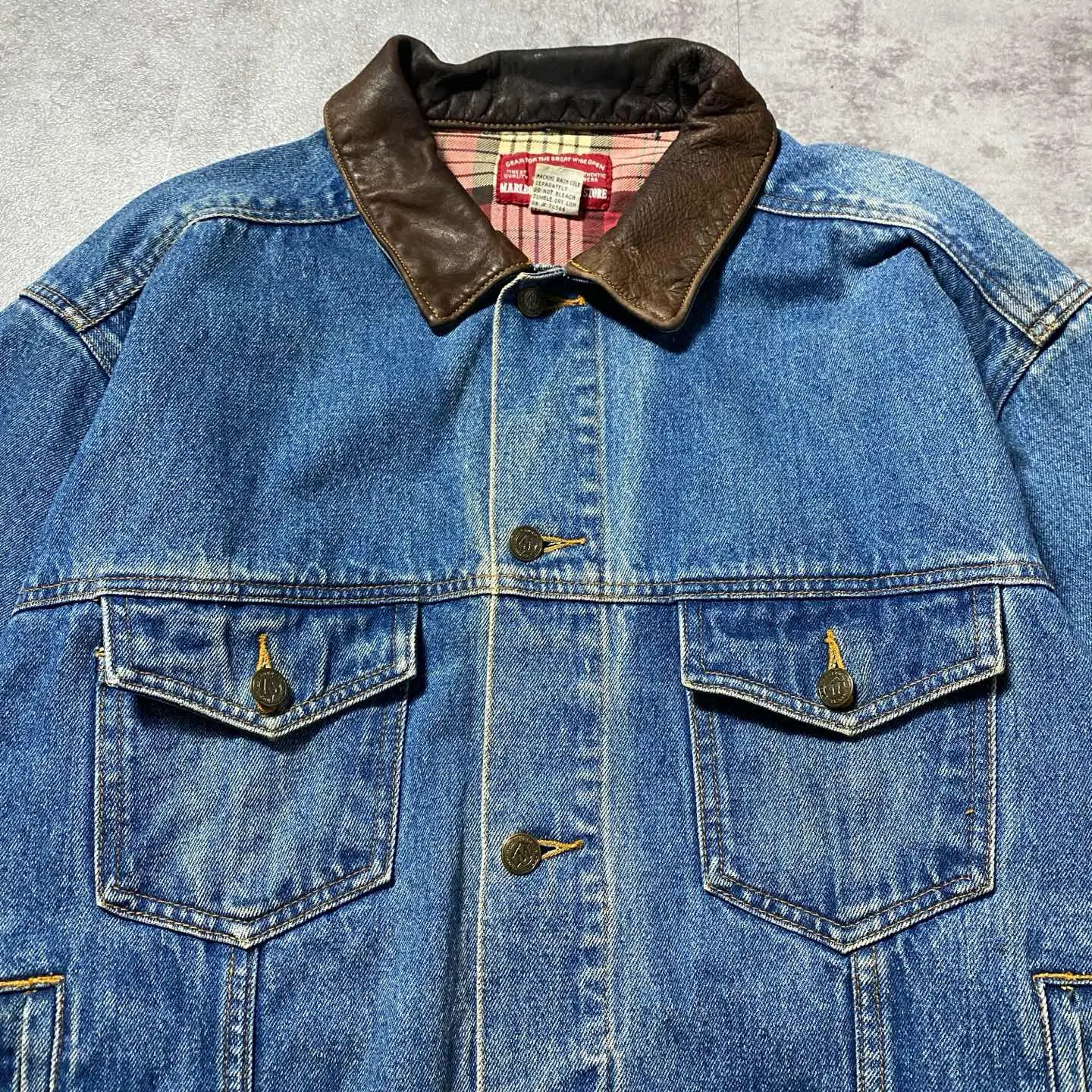 90's マルボロカントリーストア レザー襟 マカオ製 デニムジャケット