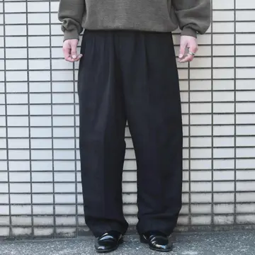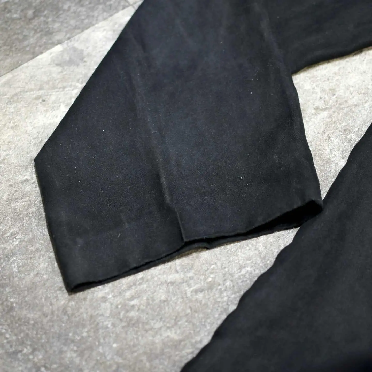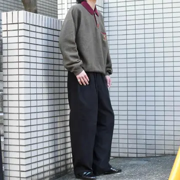 SIZE:34x32 ウエスト86cm 総丈103cm 股下74cm わたり39.5cm 裾幅23cm fabric/poly 着用画像 173cm/58kg 寒い季節に手が伸びる、コーデュロイやウール、 フェイクスウェードの生地ですが、 パンツというカテゴリーになった途端、姿を消す フェイクスウェード。 そんなフェイクスウェード生地で仕立てられた スラックス。 コーデュロイパンツよりも、上品に大人びた 雰囲気を纏うフェイクスウェード地、毛羽立ちのある生地感から、通常のスラックスと比べても 奥行きを感じる逸品です。 さらに太過ぎず細過ぎずのバランスの取れた、 汎用性のあるシルエットなのが◎ 個人的にも手元に置きたいスラックスとして おすすめです。 ※裾上げ等のレングス直しにつきましては、 購入前に、必ずご連絡お願い致します。 ※撮影状況により、実物と多少色が異なる 場合がございます。 ※古着を取り扱っているため、気づかない汚れや ほつれがある場合がございます。 ※サイズは着用感で選んでおり、 表記サイズではございません。 表記サイズは説明欄の最初に記載しております。 old vintage ヴィンテージ used 80's 90's アメリカ古着 ユーロ古着 POLO RALPH LAUREN Eddie Bauer OLD GAP LANDS' END ランズエンド LLBean エルエルビーン オールドギャップ エディーバウアー ラルフローレン ブルックスブラザーズ Brooks Brothers 黒 ブラック などがお好きな方 #vintage #old #used #90s #80s #古着 #ヴィンテージ #LLBean #oldgap #ラルフローレン #POLORALPHLAUREN #ブルックスブラザーズ #BrooksBrothers #ワイドパンツ #タックパンツ #スラックス #フェイクスウェード #TRUST