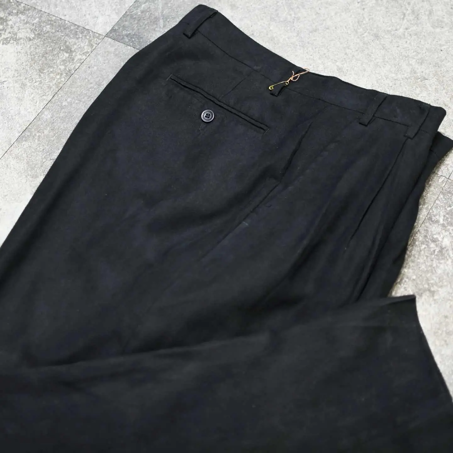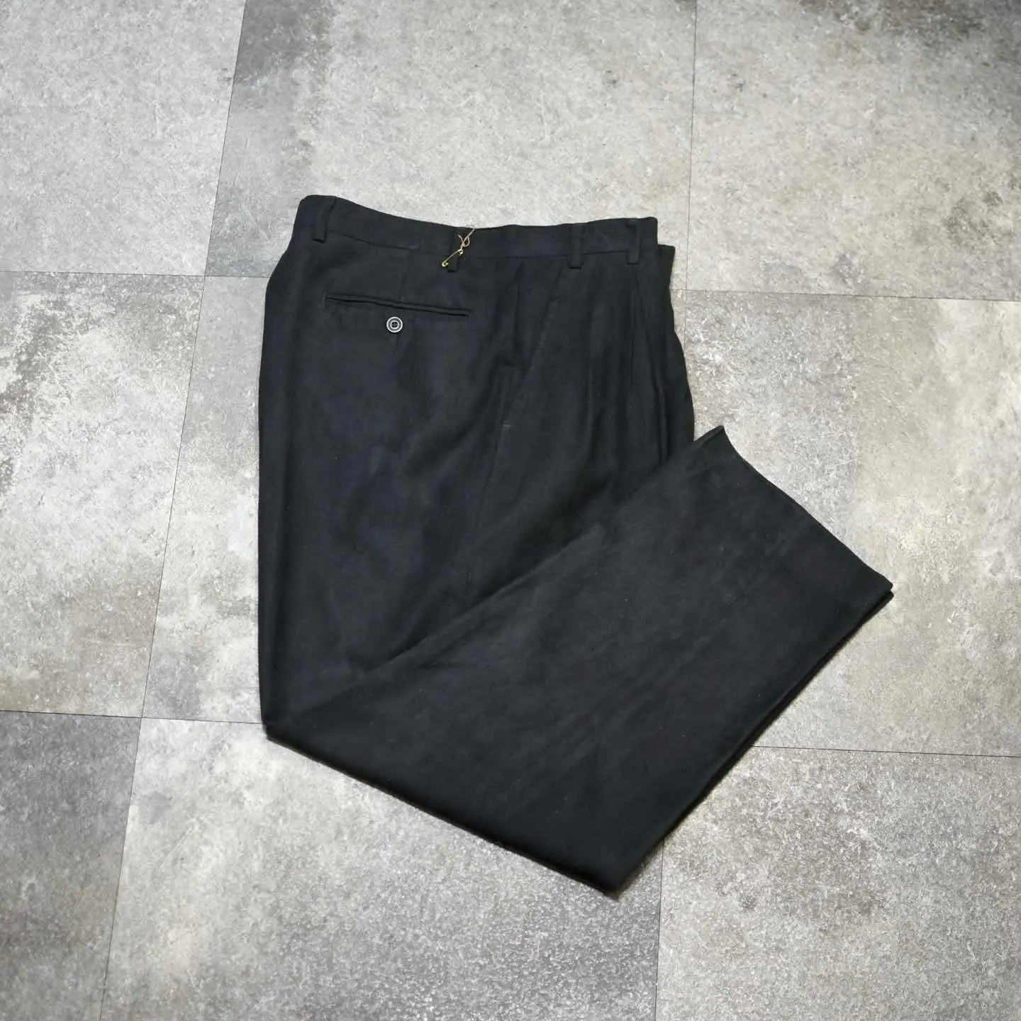 古着 ネイビー ウールスラックス スラックス タックパンツ ワイドパンツ 紺色