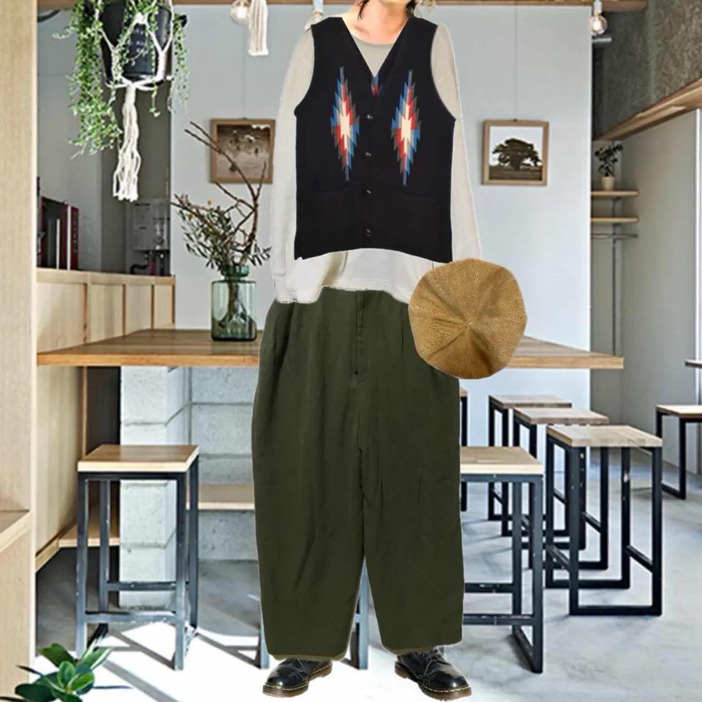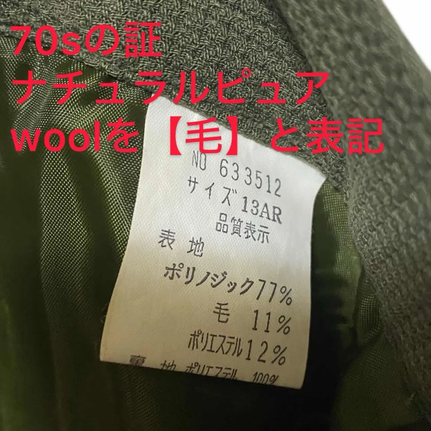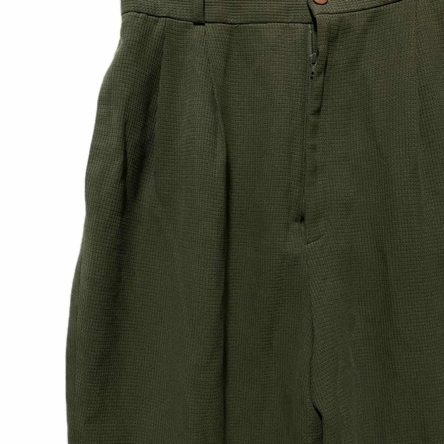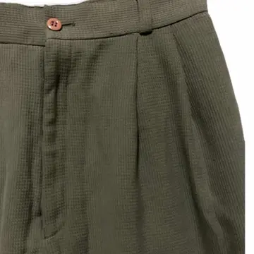 70s-80s vintage 凹凸waffle タック ワイデパボトム W66-83対応 クールに決まる premiervintageといっても過言では、ない、 変換期といわれるボトム、 70s初期は、少しフレアよりのタック、そこから、80sに、向けワイデパタックが流行りだす、それの 初期よって、70-80sが、かくてい、また、 【毛】ウール表記は、70sなんですが、※ウールは、冬じゃないの? って方は、激しく違います。 ↑化繊入れしてるから、年中いけますし、これで凹凸作ってるだけです、 凸凹入れる理由知ってますか?動きやすさです。だからミリタリーにつく使われるんですよ。 【さらに年代見極めPoint】 深めの2タック(プリーツ)入りハイウエスト気味 ワイドでテーパード気味のシルエット やや凹凸のある織り(サッカー調・ワッフル調のような表情)トラウザーの特徴にかなり近いです。 90中期年代以降はここまで深いタックはあまり よって、70-80s確定!! 【カラー】 凹凸だから、光都合で色変わります、オリーブカーキ、明るい場所だと、写真より明るくなる、?って方は、ミリタリーパンツイメージ下さい、 【サイズ表記無し】Mくらい? W66-83まで調節可 股上37ハイ決まる 股下64 腿渡37 裾幅24ワイデパおしゃれシルエット 【material】 キュプラ77 ポリ12 ウールピュアウール、11説明あるよう、凹凸に使用だから季節、ケア関係ない 【condition】 明らかに、美品premier