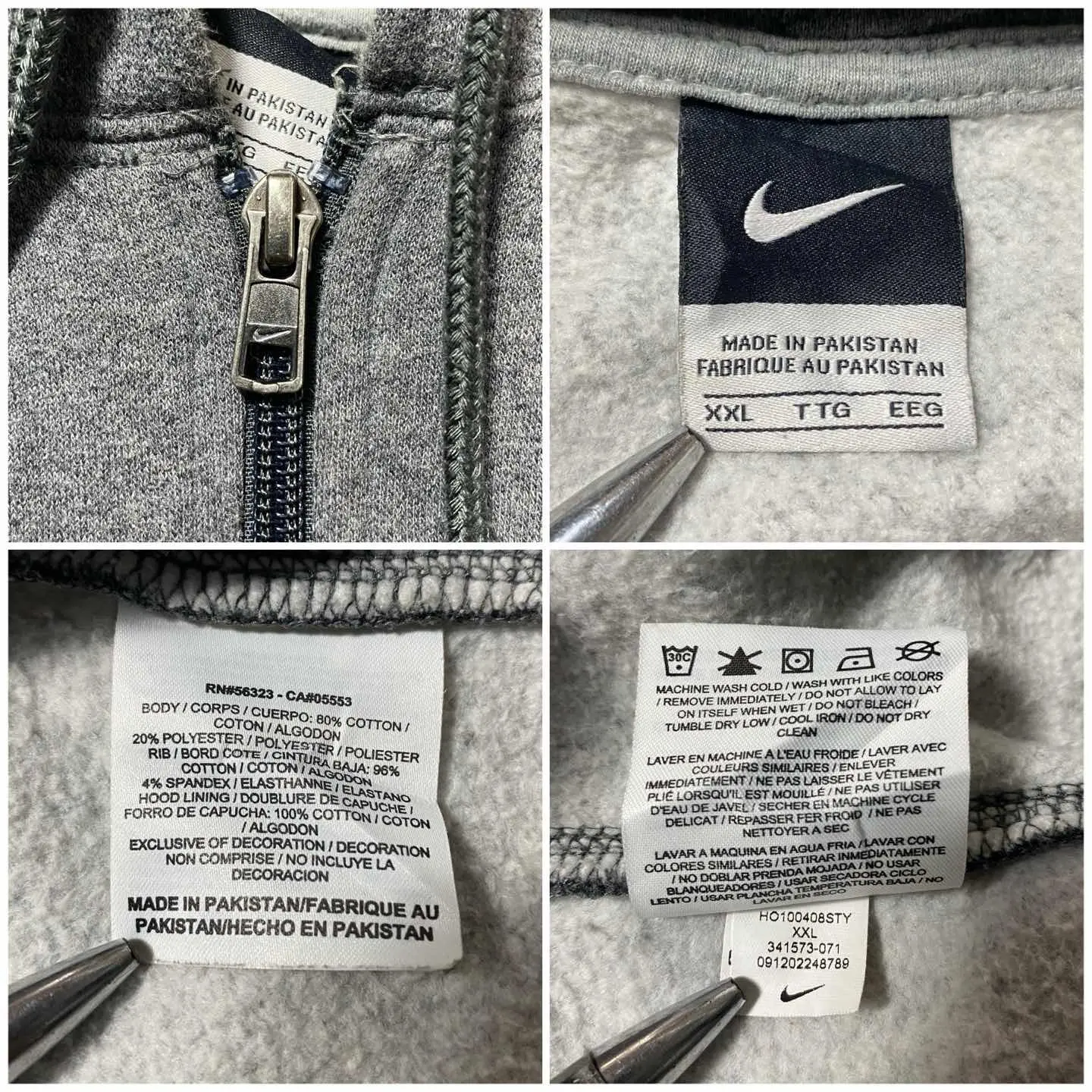 【XXL】00's NIKE スウォッシュ 刺繍ワンポイント ジップパーカー