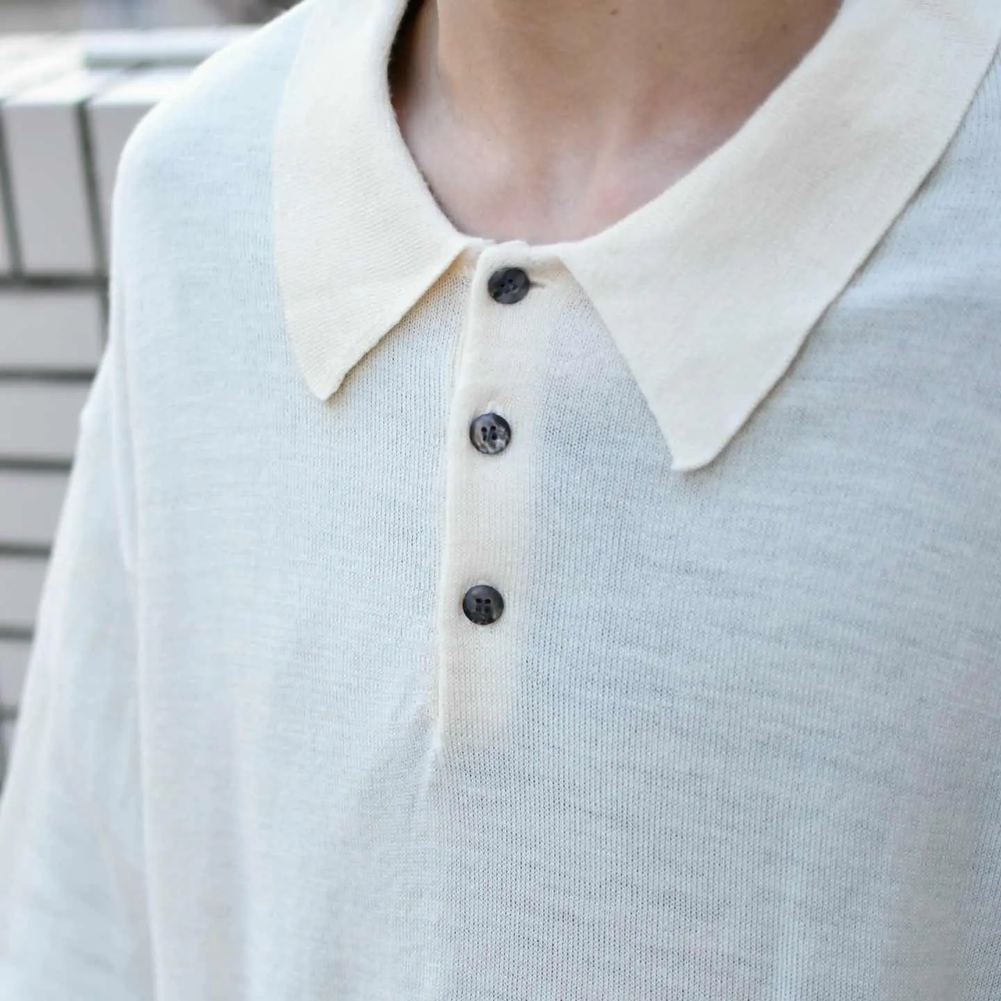 古着 メリノウール ニットポロ アイボリー ニット セーター ポロシャツ