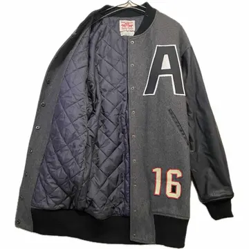 00s Award Jacket remake スタジャンL remake Award Jacket 【アワードジャケット】スタジャンの、アメリカでの、正式名称、スタジャンは、日本語よみ、↑高級な奴、 stadium jumperは、本来は、化繊系です。よって、メルトンと、mixレザー袖なんで、Award Jacket です。 ↑をretakeしました!! 面白いのが、着丈70sみたいな、スタイリッシュタイプで、長め!! バック、丁寧な刺繍フロント無地が、残念だな、と 思い、ロゴ作り取り付けしました。カレッジ風にしてます。 コーデのように、ゆるっとしたボトムに、アメカジT決めて、タックインすれば、 ネオアメカジになります、 ストリート系なら、タックインしなければ、なります、 ▷color◁ 袖ブラック ボディべザーグレー ※ブラウザで異なる場合ありますがかなり実物には、近づけてます、 ▷size◁ 平置き片面採寸【㎝表記】 表記size メンズM-L位 着丈/83 身幅/52 肩幅/53 袖丈 /64リブ込 DSは袖はハンガー採寸 ※多少の誤差は理解下さい 170/Mジャスト体型の私が着て、✔️参考に ジャスト オーバーサイズ✔︎ ビックサイズ 【素材】 MIXレザー Woolミックスメルトンウール ダイヤモンドキルティング ポリ 【状態】 良い不具合無し 検品、洗濯、検品で、3回チェックして発送しますので、ご安心して、お買い求め下さい!!