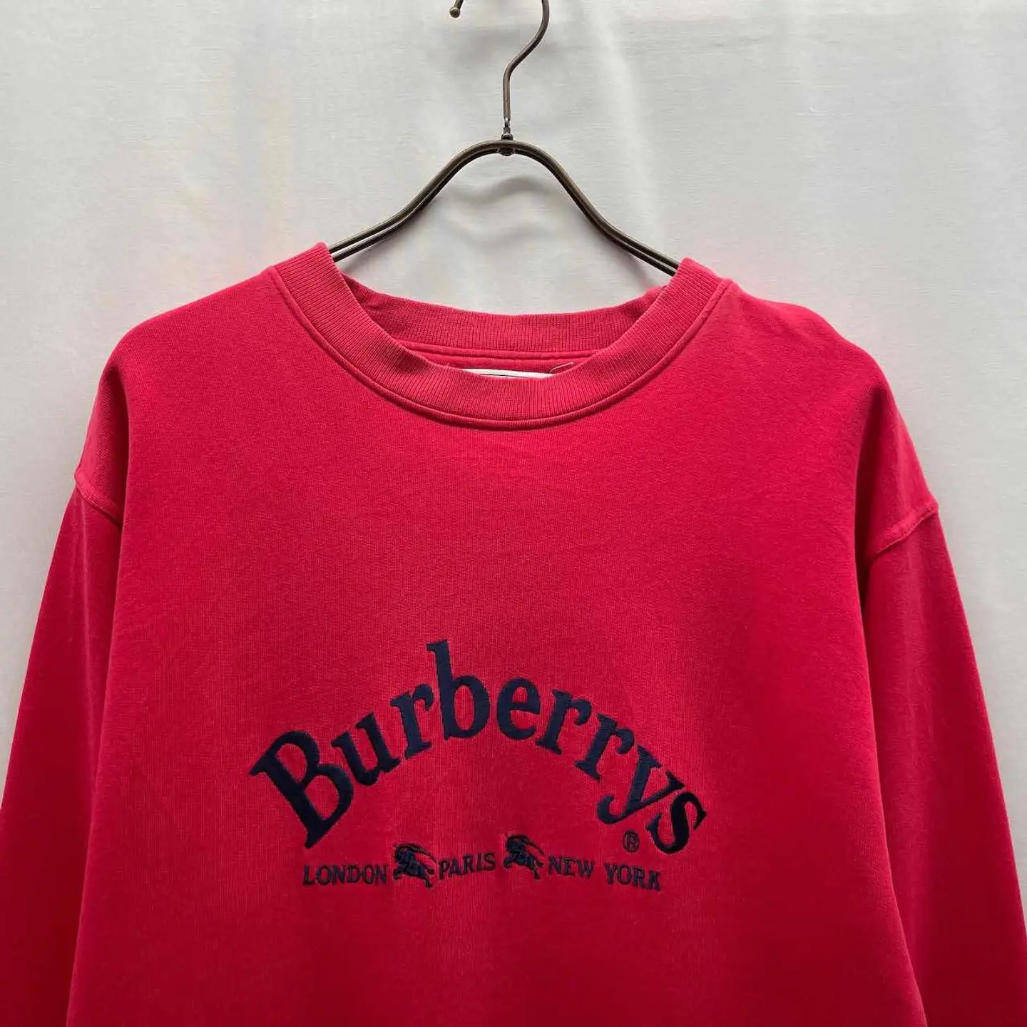 90s burberrys sweat shirt バーバリー スウェット/トレーナー burberry 赤 刺繍