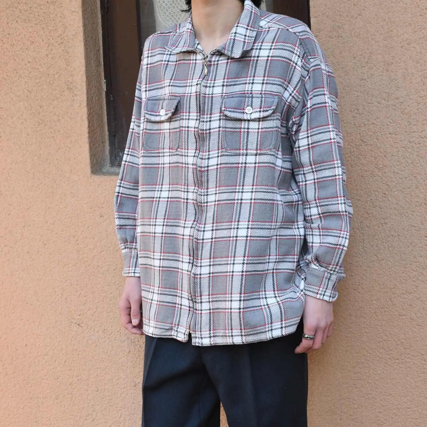 古着 ジップアップ チェックシャツ シャツジャケット デザインシャツ 長袖シャツ