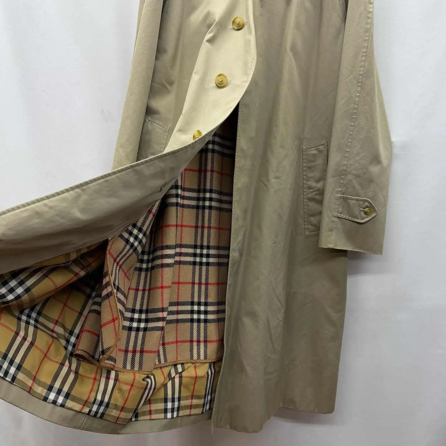 【サイズ表記】 175(cm前後が良いサイズ感) 【サイズ(cm)】 肩幅ラグランスリーブ(おおよそ56) 袖丈ラグランスリーブ(おおよそ60) 裄丈87 袖口(平置)18 腕周(平置)25 着丈108 身幅(脇下)62.5 【商品詳細】 生産国 :JAPAN/日本 ブランド:Burberrys カラー :ベージュ 素材 :75%cotton 25%polyester 【コンディション】 A 【S】新品、展示品、デットストックなど 【A】使用感少なく、状態の良いUSED 【B】使用感あるが、目立つダメージや大きな汚れは無い。 【C】使用感と部分的にダメージや汚れ有り。 【D】使用感があり、大きなダメージや汚れ有り。 ※古着故、多少の着用感や細かい汚れがございます。古着に理解のない方のご購入はお控えいただけると幸いです。 また、撮影状況により色味に若干の差異が生じる事がございます。 【ジャンル】 ユーロヴィンテージ/EURO VINTAGE 【その他】 こちらの商品は古着商品となります。 全て1点のみの在庫となります、ご注意ください。