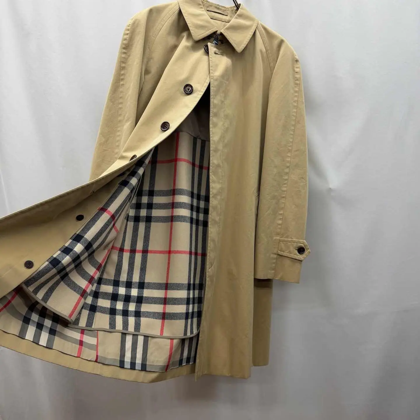 【サイズ表記】 L(175cm程度がジャスト) 【サイズ(cm)】 肩幅ラグラン(約55cm) 袖丈ラグラン(約61cm) 裄丈89 袖口(平置)15 腕周(平置)24 着丈94 身幅(脇下)57 【商品詳細】 生産国 :日本 ブランド:Burberry london カラー :ベージュ 素材 :100%cotton 【コンディション】 A 【S】新品、展示品、デットストックなど 【A】使用感少なく、状態の良いUSED 【B】使用感あるが、目立つダメージや大きな汚れは無い。 【C】使用感と部分的にダメージや汚れ有り。 【D】使用感があり、大きなダメージや汚れ有り。 ※古着故、多少の着用感や細かい汚れがございます。古着に理解のない方のご購入はお控えいただけると幸いです。 また、撮影状況により色味に若干の差異が生じる事がございます。 【ジャンル】 ユーロヴィンテージ/EURO VINTAGE 【その他】 こちらの商品は古着商品となります。 全て1点のみの在庫となります、ご注意ください。