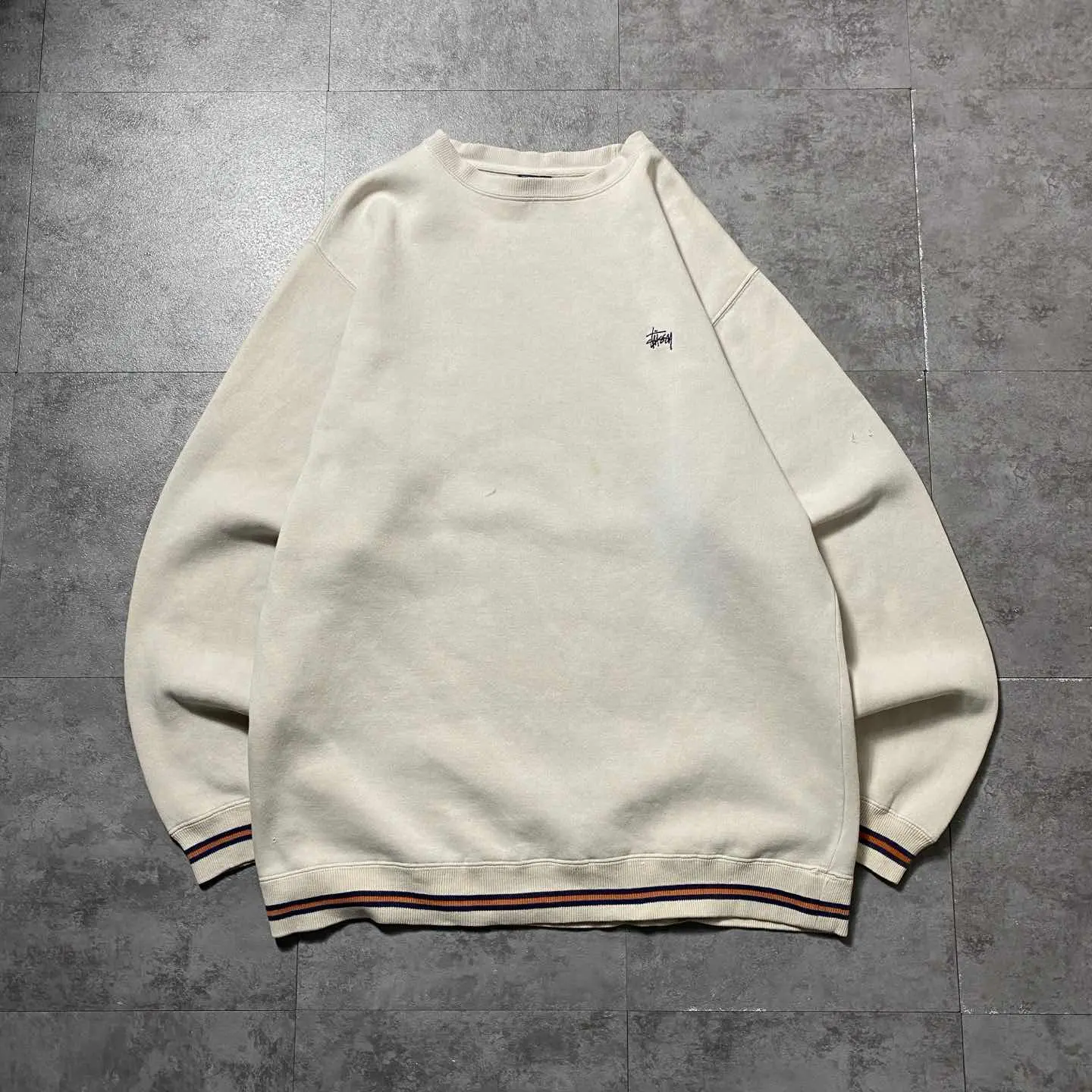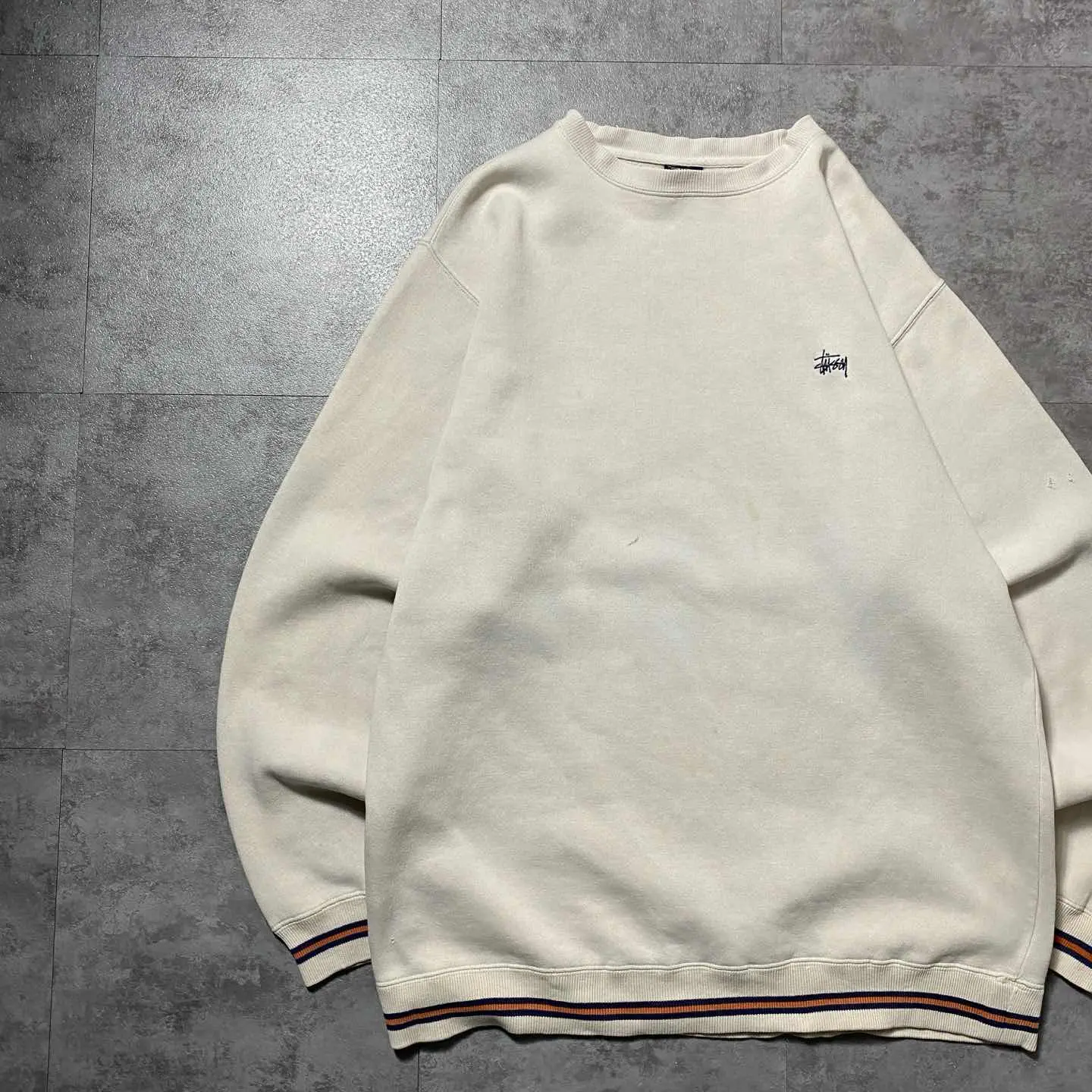 90s old stussy 刺繍ロゴ ショーンフォント ラインリブ スウェット