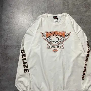00s ハーレーダビッドソン スカル センター刺繍ロゴ 白 Tシャツ ロンT