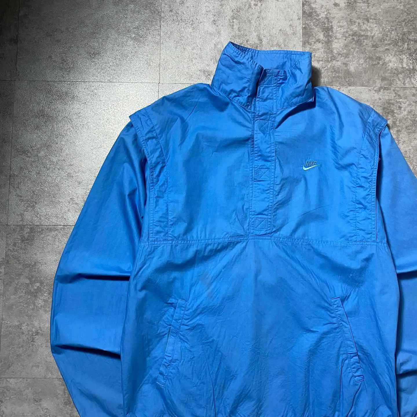 80sナイキ スウォッシュ刺繍ワンポイント スタンドカラー ナイロンプルオーバー