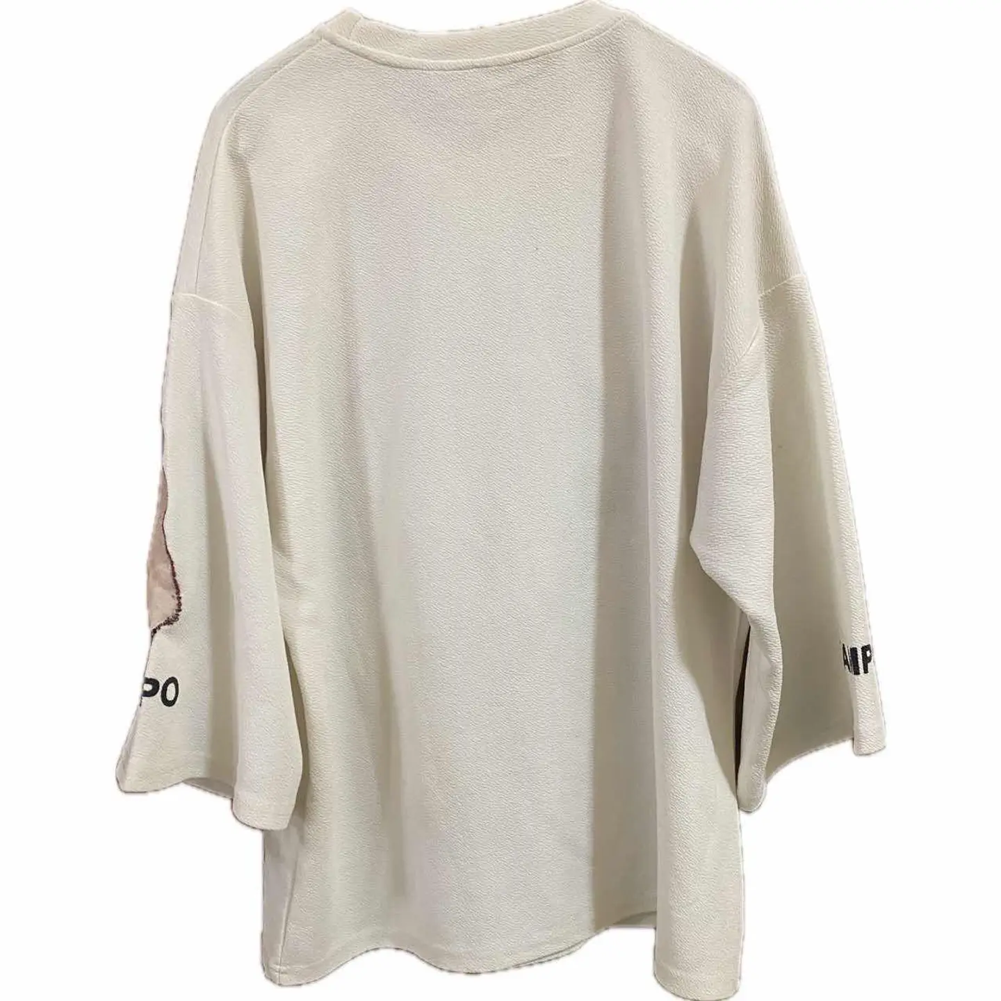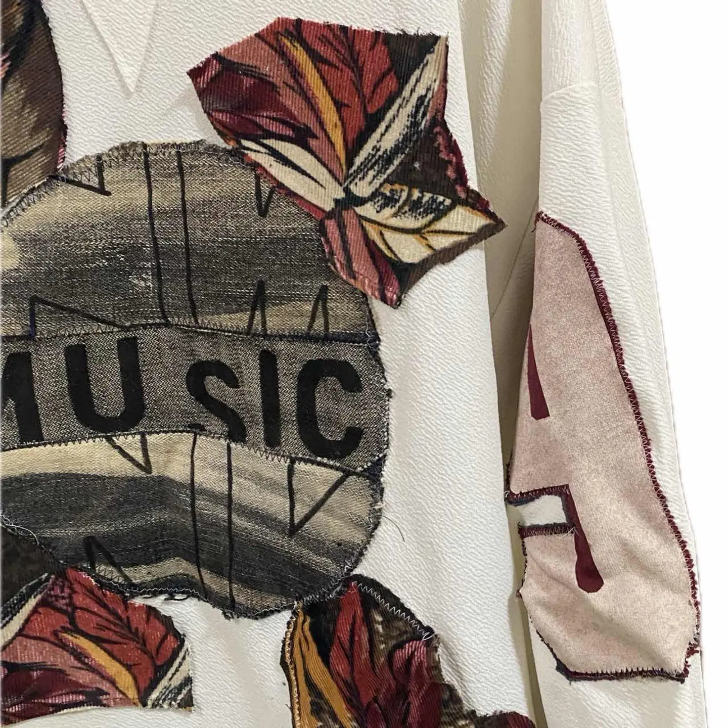 80s リメイクHTC N.M.N.Lカスタム 8-9分凹凸T F 気温差を関係なく、楽しめるカットソーを作りたくて、デッドストック80svintage最上級、HTC 凹凸を、作りました、 音楽に心救われた経験はありませんか?私はあります。またファッションにもです。ファッションは、アートだ、って概念から、リメイクはアーティスティックに仕上げたりもします。 体のコアに、ノーミュージックノーライフのオリジナルロゴを丁寧に作り見つけ、さらに心から花が開いていくといいねって言う意味合いを持って、アフリカンバティックの使いました 正直、凸凹ボディにミシンをやるのは、ど素人には絶対できません 私は洋裁学校卒だからできます さらに計算しつくした着回し、1枚できるときは、ボックスシルエットを生かして、レイヤード、さらっと羽織るとフロントのノーミュージックノーライフノーが一気に破壊力を出します。 これがフロントデザインの魅力です。Tシャツは自分のスタンスを表すアイコンです。 ちゃんとメッセージ性のあるあなただけの1着、体験してください コーディネートは参考になれば嬉しいですが、大人アメカジスタイルですね。少しだけヨーロピアンの要素を取り入れてます、 ▷color◁ ナチュラル ※ブラウザで異なる場合ありますがかなり実物には、近づけてます、 ▷size◁ 平置き片面採寸【㎝表記】 表記size F 着丈/70 身幅/63 肩幅/67DSBOXレイヤード最強よって、80s確定しました55 ↓ リストスリーブより 袖丈 / DSは袖はハンガー採寸 ※多少の誤差は理解下さい 170/Mジャスト体型の私が着て、✔️参考に ジャスト オーバーサイズ ビックサイズ✔︎ 【素材】 HTC 凹凸加工、ガゼットV シワにならない側から乾くHTCなんでめちゃくちゃタフ年中活躍 【状態】 デッドストックつかいました、さらに、私の技術、最強 検品、洗濯、検品で、3回チェックして発送しますので、ご安心して、お買い求め下さい!!