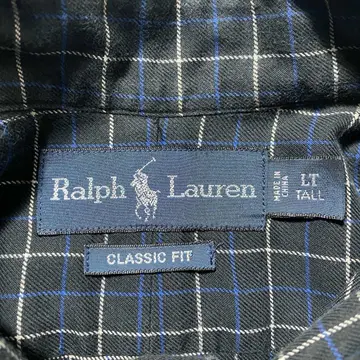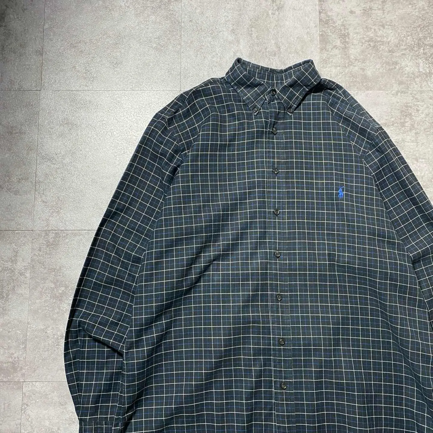 00s ラルフローレン 刺繍ロゴ ポニー チェック総柄 ボタンダウンシャツ