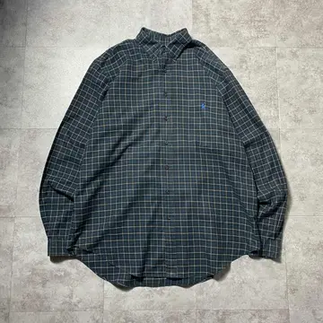 00sラルフローレン 刺繍ロゴ ポニー チェック総柄 ボタンダウン ネルシャツ
