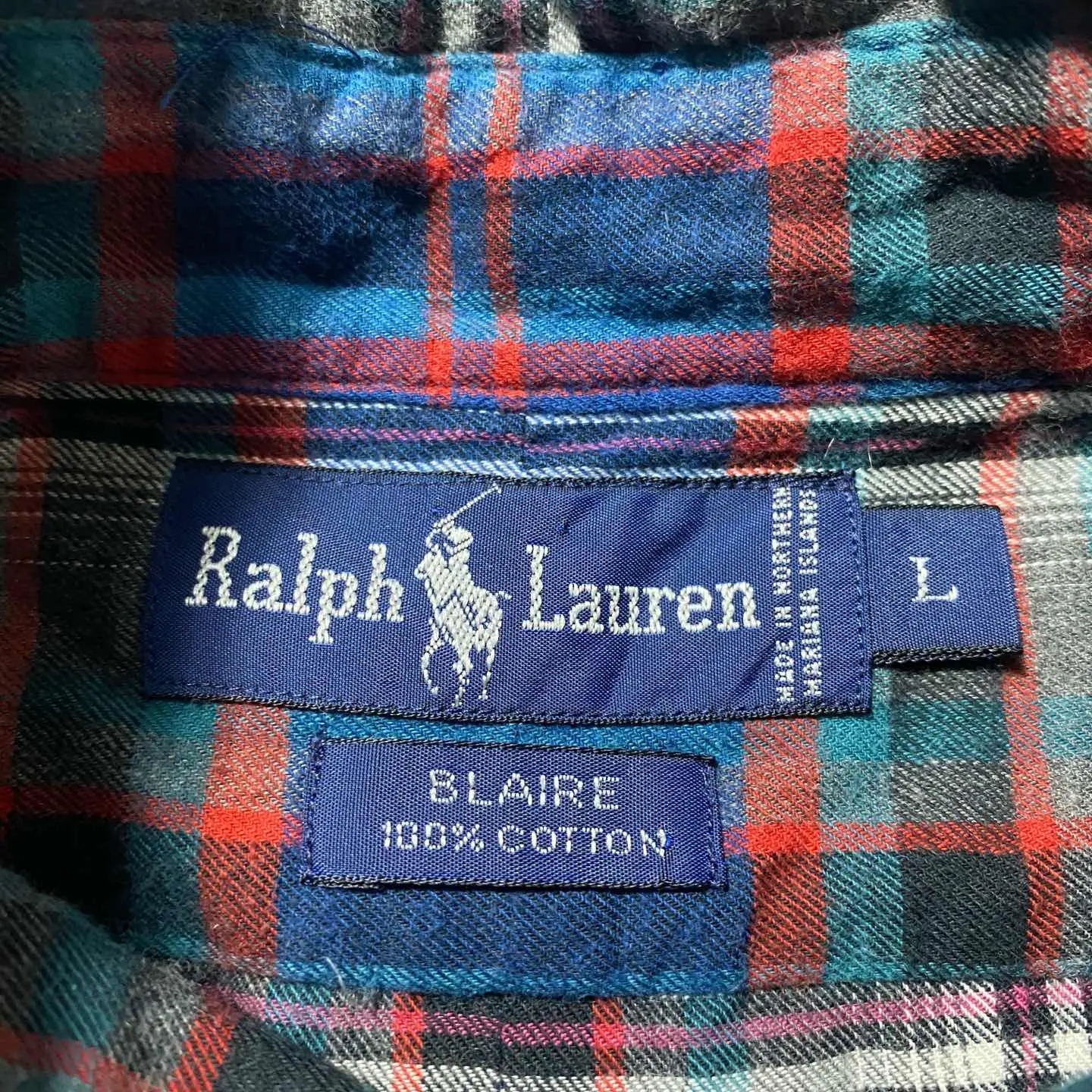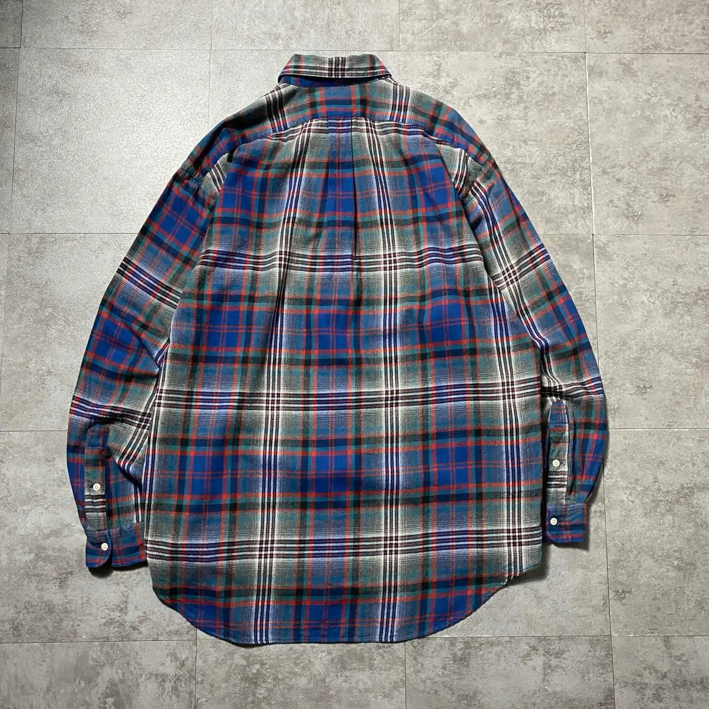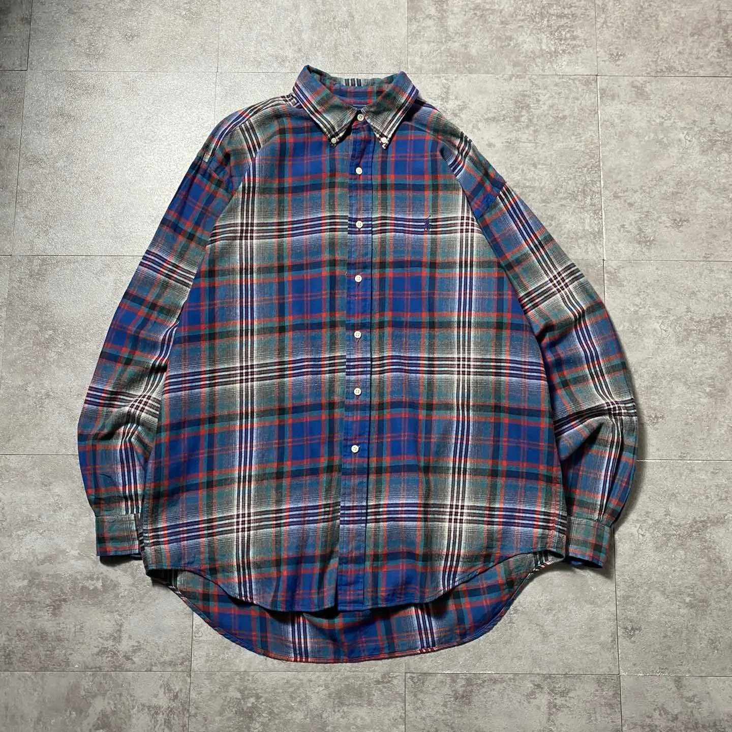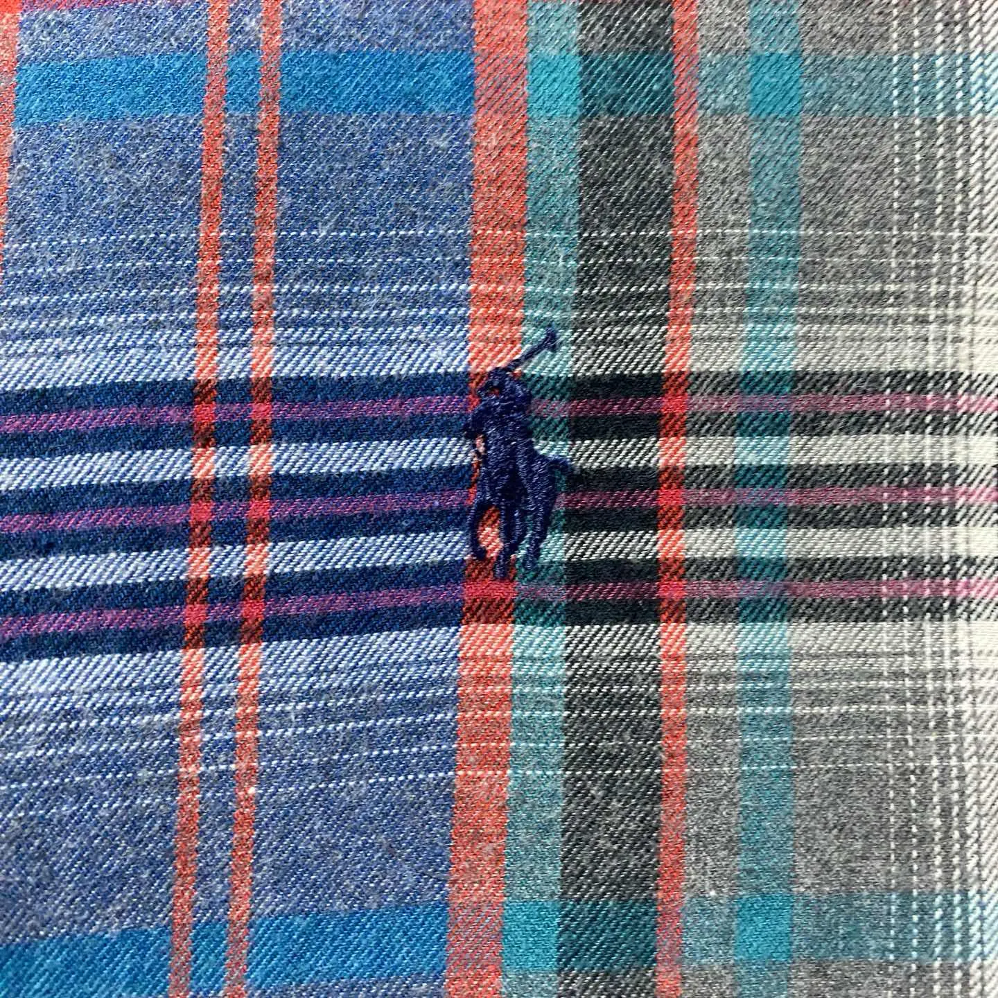 00sラルフローレン 刺繍ロゴ ポニー チェック総柄 ボタンダウン ネルシャツ