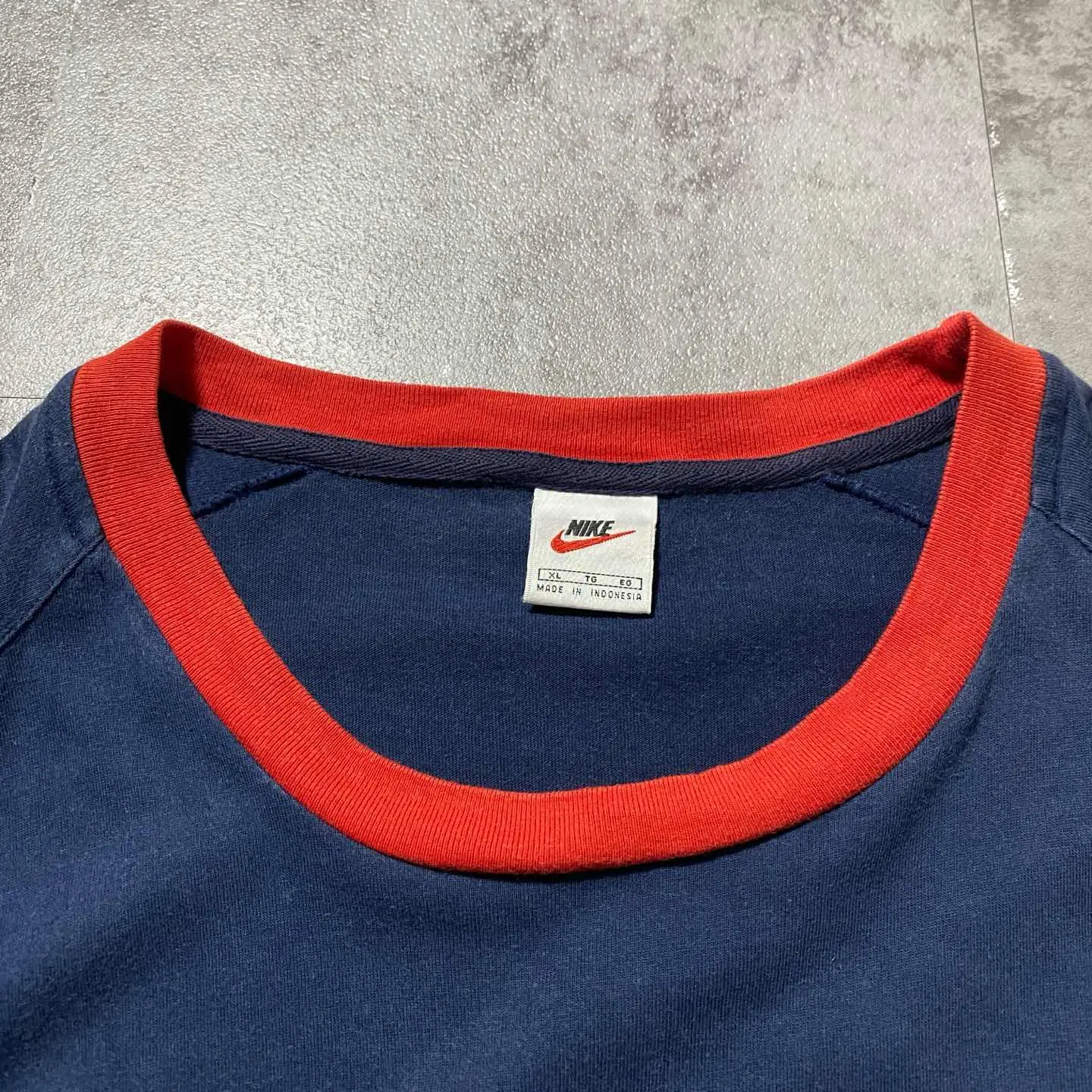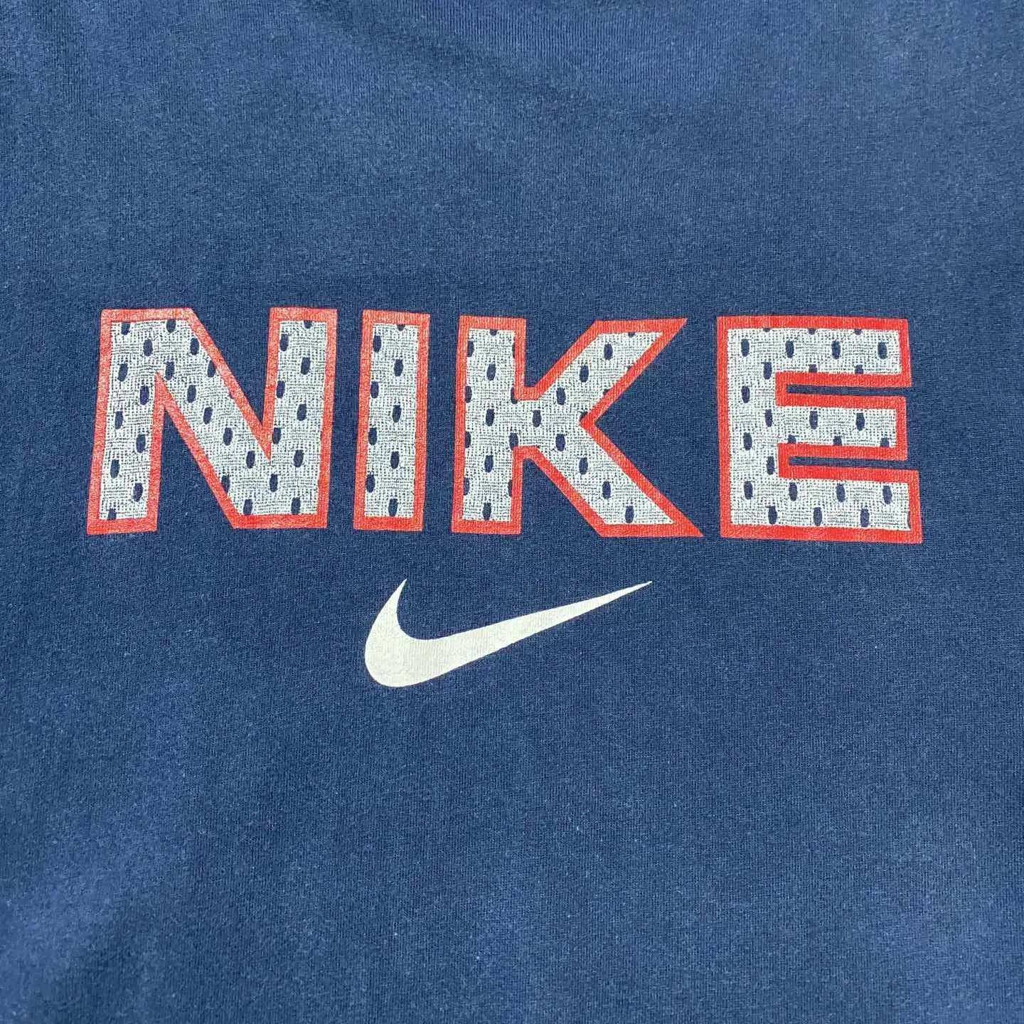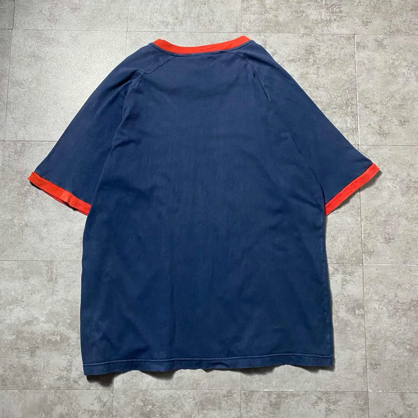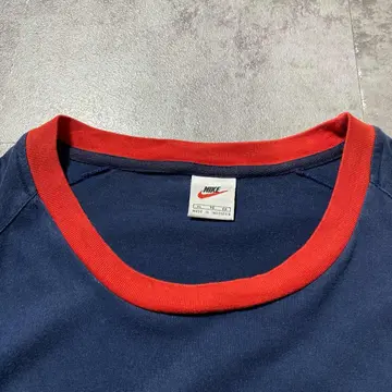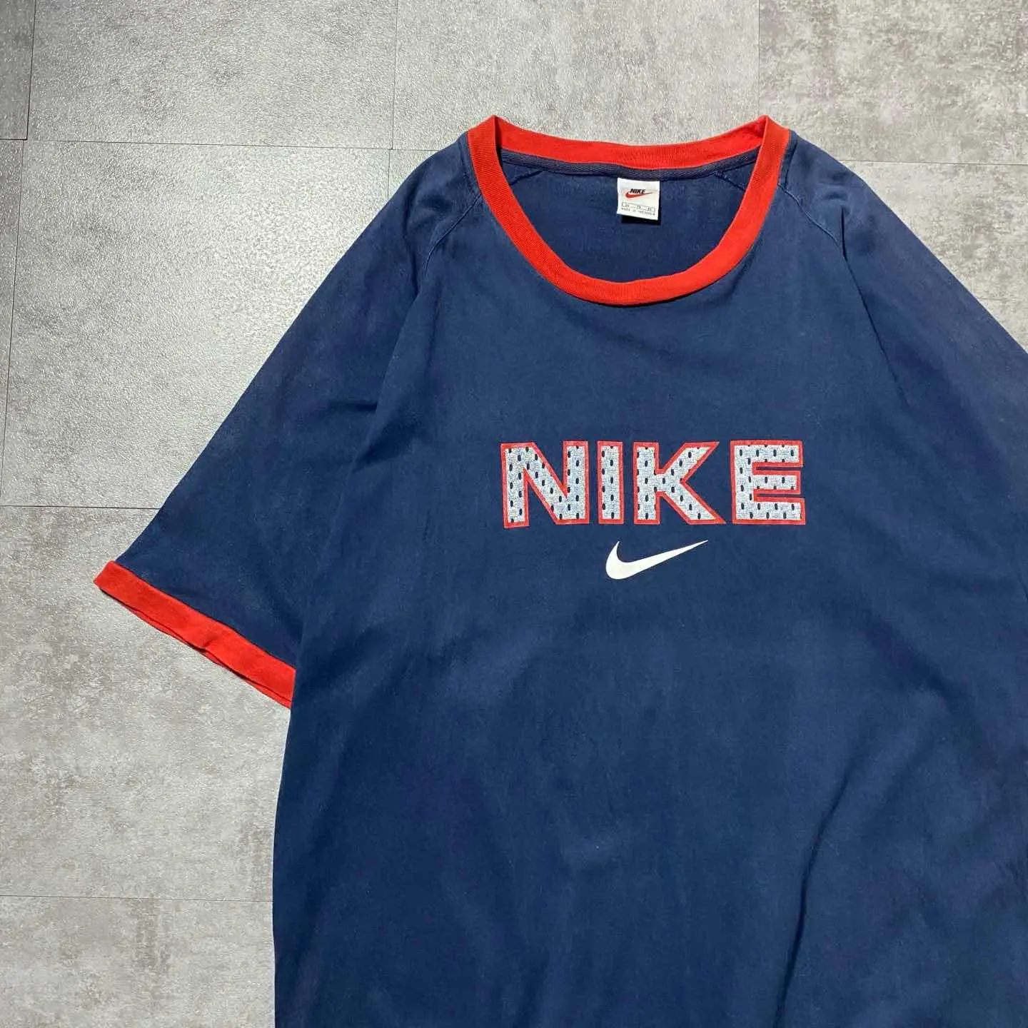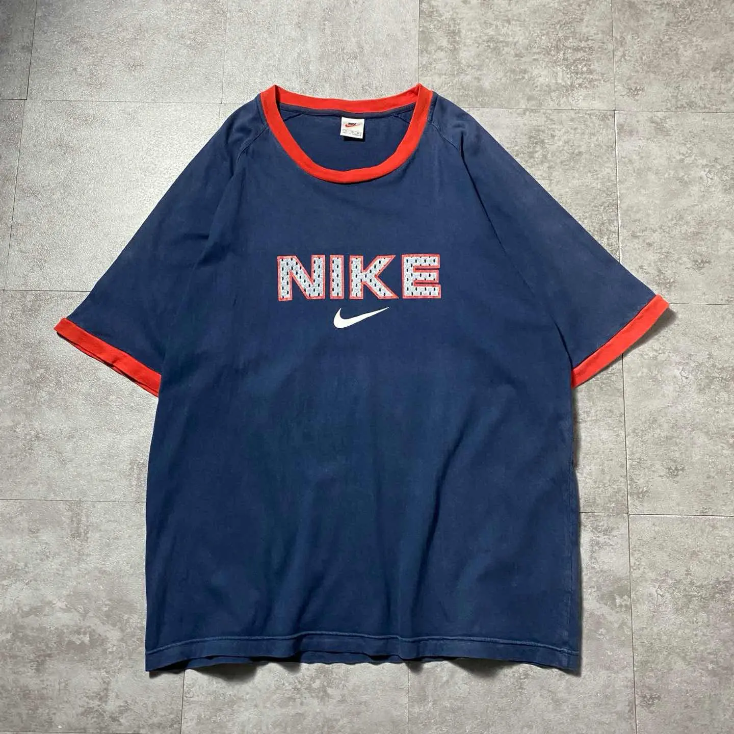 【XL】90s NIKE プリント リンガーネック ネイビー Tシャツ