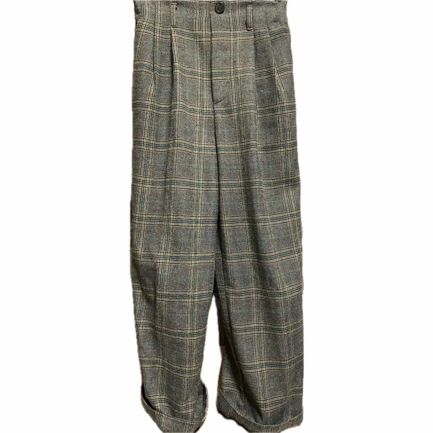 80s 極上品 オーダーvintage グレンチェック 2タックボトム ヨーロピアンな、雰囲気ただよう、ことしは外せない、チェックの中でも、大人気グレンチェックが、 80sオーダー美品で、登場!! ツータックが、クールな、シルエットに決まり、 先ず、ハイウエストで、大人ルードスタイル、 次ビックサイズTに、フレイムスウェットあわせ、アメカジストリート、スタイル、決まります、 要は、なんにでも、あいますし、年中いけるから、買うしかないっ!! ▷color◁ グレンチェック ※お使いのブラウザにより色が変わってみえる場合あります ▷size◁ 平置き片面採寸【㎝表記】 表記sizeM.L位 【※ウエストのみ、メジャーで一周採寸】 ウエスト66-86対応 股上33 股下68 腿渡り幅32 裾幅29 モデル170㎝/普通体型、30インチジャストな体型参考に、 ▷material◁ コットン、ポリ、ビスコースで、柄だしてますね、materialチェッカー使用 ▷condition◁ 極上美品、
